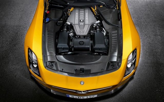 SLS AMG Black Series ตัวนี้ยังคงใช้เครื่องยนต์ตัวเดิมคือ ขนาด  6.2 ลิตร V8 แต่มีการเพิ่มความเร็วรอบของเครื่องยนต์สูงสุดเป็น 7,200-8,000 รอบต่อนาที (เดิม SLS AMG ตัวมาตรฐานความเร็วรอบของเครื่องยนต์อยู่ที่ 6,800 รอบ/นาที) ทำให้ได้แรงม้าสูงสุดเป็น 464 kW (622 แรงม้า) แรงบิดสูงสุดที่ 635 N·m (468 lb·ft)