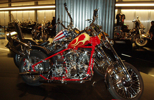 ![]() 1912- HD 499 คันนี้อาจไม่ใช่มอเตอร์ไซค์สุดซ่าในปัจจุบัน แต่นี่แหละคือจุดเริ่มต้นของการแต่งมอเตอร์ไซค์ที่ยอดเยี่ยมอีกรุ่นหนึ่ง ซึ่งลูกค้าได้นำรถรุ่น HD 499 มาให้โรงงานติดไฟหน้า เปลี่ยนโช้คอัพหน้า ปรับองศาเบาะนั่ง และที่น่าทึ่งที่สุดคือ ติดตั้งแผ่นบังโคลนเป็นคันแรกอีกด้วย ![]() 1941 - FL 74 “King Kong” เดิมทีแล้วเจ้า FL 74 นั้น เป็นมอเตอร์ไซค์ที่วางเครื่องยนต์หัวสูบเดียว ซึ่งกลายเป็นว่ามันไม่สะใจอย่างแรง ดังนั้น Felix Predko ดีลเลอร์รายหนึ่งจึงนำเครื่องยนต์ V-Twin สองหัวฉีดซึ่งใหญ่กว่าเดิม ยกเครื่องระบบเกียร์ใหม่ ต่อที่นั่งออกไปด้านหลังอีกที่หนึ่งพร้อมติดคันบังคับ ใส่ท่อไอเสียให้เป็น 4 ท่อ จนไป ๆ มา ๆ เจ้ามอเตอร์ไซค์คันนี้กลับมีความยาวมากถึงเกือบ 4 เมตร มันจึงได้รับฉายาว่า คิงคอง เพราะความใหญ่อลังการของมัน ปัจจุบันเจ้าคิงคองได้รับการรักษาเป็นอย่างดีอยู่ในพิพิธภัณฑ์ Harley-Davidson ![]() 1947 - FL 74 OHV Twin ในปี 1947 ฮาร์เลย์ได้ออกแบบ ผลิตชิ้นส่วน และชุดแต่งของมอเตอร์ไซค์รุ่น FL 74 ออกมาใหม่ ไม่ว่าจะเป็น กระเป๋า ขาตั้ง เบาะ แฮนด์ และทีเด็ดคือเครื่องยนต์สูบคู่กว่า 1,200 ซีซี โดยเจ้าของผู้ไม่ประสงค์ออกนามรายนี้ได้ใส่ชุดแต่งเอาไว้อย่างครบถ้วน ซึ่งรูปลักษณ์อาจจะดูไม่หวือหวาเท่าไร แต่ก็บอกเล่าเรื่องราวของยุคนั้นได้พอสมควร ซึ่งปัจจุบัน FL 74 OHV Twin ได้รับการเก็บรักษาอยู่ที่พิพิธภัณฑ์ Harley-Davidson เช่นกัน ![]() 1957 - FLH "Billy Bike" เจ้าฮาร์เลย์คันนี้ถูกออกแบบมาเป็นพิเศษเพื่อใช้ในฉากภาพยนต์เรื่อง Easy Rider ซึ่งขี่โดย Dennis Hopper หนุ่มมาดเข้มที่ดูเข้ากับรถคันนี้อย่างเหมาะเจาะ โดยการดัดแปลงเริ่มตั้งแต่ใส่โช้คอัพสูง ปรับแฮนด์ให้สั้น เบาะนั่งสั่งตัดตามรูปทรง รวมทั้งบังโคลนและหลอดไฟสีเงิน ท่อไอเสียคู่ ถังน้ำมันขนาดเล็ก ฝาครอบโซ่ และลวดลายไฟที่ยังฮิตอยู่จนปัจจุบัน ฮาร์เลย์ได้สร้างรถรุ่นนี้ออกมาสองคัน ซึ่งพังไปหนึ่งคันและหายไปอีกหนึ่ง จนในที่สุดทางฮาร์เลย์ได้ตัดสินใจสร้างรถรุ่นนี้ขึ้นมาอีกคันหนึ่งเพื่อจัดแสดงในพิพิธภัณฑ์ Harley-Davidson โดยเฉพาะ ![]() 1960 - FLH "Captain America" มอเตอร์ไซค์คันนี้ถูกสร้างเพื่อใช้ในฉากภาพยนตร์เรื่อง Easy Rider ด้วยเช่นกัน ขี่โดย Peter Fonda ที่เป็นทั้งนักแสดงและโปรดิวเซอร์ของหนัง โดยรถรุ่นดังกล่าวใช้เครื่องยนต์แบบเดิม ส่วนที่ปรับแต่งนั้นมีเพิ่มความยาวเบาะ ลวดลายธงชาติสหรัฐฯ ทั้งบนตัวถังและหมวกกันน็อก ซึ่งคันนี้เป็นคันที่ถูกนำไปเข้าฉากโดนระเบิดในตอนท้ายเรื่อง จึงต้องสร้างใหม่เพื่อจัดแสดงในพิพิธภัณฑ์ ![]() 1973 - FLH Electra "Rhinestone" Glide ฮาร์เลย์เปิดตัวมอเตอร์ไซค์รุ่น Electra-Glide ในปี 1965 แต่ด้วยความที่ไม่อาจสาแก่ใ