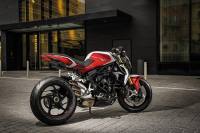 เครื่องยนต์ เป็นแบบ 4 จังหวะ 3 สูบ In-line 3 ระบบระบายความร้อน หม้อน้ำและชุดพัดลมไฟฟ้า ความจุเครื่องยนต์ 798 ซีซี. จากกระบอกสูบ X ระยะชัก เท่ากับ 79 X 54.3 มม. กำลังอัดเครื่องยนต์ 13.3 : 1 ระบบการจ่ายเชื้อเพลิง ระบบหัวฉีดอิเล็กทรอนิคส์ MIKUNI วาล์ว : 12 ตัว ขบด้วยเพลาลูกเบี้ยวแบบคู่ด้านบนเหนือฝาสูบ DOHC ชุดเกียร์ แบบธรรมดา 6 สปีด คลัทช์ เป็นแบบชนิดเปียกสั่งงานด้วยสายสลิง ระบบสตาร์ทเครื่องยนต์ ด้วยระบบไฟฟ้า ระบบขับเคลื่อน โซ่/สเตอร์ ท่อไอเสีย เป็นแบบ 3-1-3 ปลายท่อทรงกระบอกเรียงหน้า 3 Pipe ดึงเอาเอกลักษณ์เฉพาะของเทพในนิยายกรีก แรงม้า 140 ตัวที่ 13,100 รอบ/นาที แรงบิดสูงสุด 86 นิวตัน-เมตร ที่ 10,100 รอบ/นาที ทำความเร็วสูงสุด : 200 กม./ชม. มิติตัวรถ – กว้าง/ยาว/สูง ของเบาะนั่ง เท่ากับ 725/2,085/810 มม. – ระยะห่างฐานล้อ 1,380 มม. – น้ำหนักรวม 168 กิโลกรัม – ถังเชื้อเพลิงจุ 16.6 ลิตร – เฟรมเดิมเป็นสีแดงถูกเปลี่ยนเป็นสีทอง ![]() วงล้อเป็นอัลลอย – ด้านหน้าขนาด 17 นิ้วจับคู่กับยาง 120/70 ZR 17 – ล้อหลังขนาด 17 นิ้ว สวมยาง 180/55 ZR 17 ระบบกันสะเทือน – ด้านหน้า เป็นช็อคอับเทเลสโคปิคหัวกลับ ขนาด 43 มม. ระยะการทำงาน 125 มม. ผิวแกนเคลือบด้วย DLC พร้อมโหมดการปรับตั้งแบบเต็มรูปแบบของ MARZOCCHI – ช็อคอับหลัง เป็นแบบเดี่ยว สปริงเหลืองกระปุกซับแท้งค์สีทอง จากสำนัก SACHS ปรับตั้งได้เต็มรูปแบบ ระยะของการยุบตัว 125 มม. เบรค – เบรคหน้า เป็นแบบจานเบรกคู่ชนิดกึ่งให้ตัวได้ ขนาด320 มม. คาลิเปอร์ 4 ลูกสูบ BREMBO เรเดี้ยลเมาท์ สั่งงานด้วยไฮดรอลิค พร้อมด้วยระบบ ABS ![]() – เบรคหลัง แบบเดี่ยวชนิดตายตัว ขนาด 220 มม. คาลิเปอร์ 2 ลูกสูบ BREMBO และระบบ ABS พูดกันถึงมอเตอร์ไซค์ที่ผลิตออกมาขายอยู่ ณ ปัจจุบัน มันก็มีคำว่า “สเป็ค” เข้ามาเอี๋ยวด้วยเสมอไป ไม่ว่าจะเป็น “สเป็คอเมริกา” หรือ “สเป็คญี่ปุ่น” ซึ่งคำว่า “สเป็ค” ในที่นี้ก็หมายถึง รูปแบบที่จะประจำอยู่กับรถคันนั้นๆ โดยบางครั้งตัวรถก็มีหน้าตาที่เหมือนๆ กัน แต่มาต่างตรงไฟเลี้ยวบ้าง ไฟในการส่องป้ายทะเบียนบ้าง หรือไม่ก็โน่นเลยไปแตกต่างที่เครื่องยนต์ โดยบางสเป็คจะมีแรงม้าแบบมาเต็มและบางสเป็คก็มีการกั๊กเอาไว้ ซึ่งขึ้นอยู่กับกฏหมายของแต่ละประเทศ โอกาสนี้ก็เลยจะดึงเอา Brutale 800 RR รถสเป็คยุโรปมาให้ชมกัน ที่มา : http://www.9carthai.com |