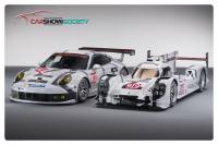 ![]() Porsche 919 Hybrid Matthias Müller ประธานกรรมการของปอร์เช่ได้กล่าวไว้ว่า “สิ่งสำคัญในการพัฒนารถต้นแบบLe Mansคือการทำตามกฎของรถแข่ง สำหรับคลาสรถที่เกี่ยวข้องกับการใช้พลังงานให้ได้อย่างมีประสิทธิภาพ ที่สุด ในปี 2014 นั้น รถที่จะชนะการแข่งขัน World Endurance Championship series และ 24 hours of Le Mans จะไม่ใช่แค่เพียงรถที่เร็วที่สุดอีกต่อไป หากแต่จะเป็นรถที่จะวิ่งได้ไกลยิ่งกว่าด้วยพลังงานที่มีมากขึ้น และนี่คือความท้าทายที่ผู้ผลิตรถต้องทำให้ได้สำหรับ 919 ไฮบริด (919 Hybrid) ก็จะเป็นรถที่เร็วที่สุดของเรา และเป็นรถแข่งที่มีความท้าทายซับซ้อนที่สุดตั้งแต่ปอร์เช่เคยสร้างมาอีกด้วย” ประสิทธิภาพและการประหยัดที่เหนือชั้นของปอร์เช่ 919 ไฮบริด (919 Hybrid) คือผลลัพธ์ของการรักษาความสมดุลของแนวคิดหลัก การรวมชิ้นส่วนแต่ละชิ้นทั้งหมดให้กลายมาเป็นชิ้นส่วนที่มีประสิทธิภาพ ตั้งแต่เครื่องยนต์สันดาปไปจนถึงระบบการหมุนเวียนพลังงานเพื่อนำกลับมาใช้ใหม่ (Energy recover system), ตัวถังและระบบส่งกำลัง, หลักอากาศพลศาสตร์และหลักสรีรศาสตร์ของผู้ขับขี่ เครื่องยนต์สันดาปคือเครื่องยนต์ V4 เป็นการพัฒนาเครื่องยนต์ตามหลักปรัชญาการลดขนาดเพื่อเน้นอนาคต โดยเครื่องยนต์มีขนาด 2 ลิตร มาพร้อมกับระบบ Direct-Injection และ turbocharged เครื่องยนต์สามารถลากรอบไปได้ถึง 9000rpm และมีกำลัง 500 แรงม้า ![]() Romain Dumas (นักแข่งชาวฝรั่งเศส), Neel Jani (นักแข่งชาวสวิสเซอร์แลนด์) และ Marc Lieb (นักแข่งชาวเยอรมัน) จะช่วยกันทำการขับขี่รถยนต์ปอร์เช่ 919 ไฮบริด (919 Hybrid) โดยใช้รถเบอร์ 14 ส่วนรถเบอร์ 20 จะทำการขับขี่โดย Timo Bernhard (นักแข่งชาวเยอรมัน) Brendon Hartley (นักแข่งชาวนิวซีแลนด์) และ Mark Webber (นักแข่งชาวออสเตรีย) Porsche 911 RSR 911 คันนี้ คือเจเนอเรชั่นที่ 7 แล้ว ของ Porsche ในตระกูล 911 ได้รับการพัฒนามาจากมอเตอร์สปอร์ตโดยตรง 911 RSR คันนี้แสดงให้เห็นถึงการออกแบบโดยใช้หลักการใช้วัสดุที่มีน้ำหนักเบา และมีความสมดุลหลักอากาศพลศาสตร์ อีกทั้งยังทำให้เวลารอบสนามนั้นดียิ่งขึ้น และประหยัดมากขึ้นควบคู่กันไป Porsche 911 RSR มีกำลังขับ 470 แรงม้า เผยโฉมเป็นครั้งแรกในปี 2013 และในปีที่แล้ว รถคันนี้ได้เข้าเส้นชัยรายการแข่งขัน 24 hours of Le Mans ในอันดับที่ 1 และ 2 และในเดือนมกราคม 2014 Porsche ทำการเฉลิมฉลองตำนานความสำเร็จที่การแข่งขัน American 24-hour classic ใน Daytona และทีมงานจากโรงงาน Porsche ทีมที่ 2 ภายใต้ทีม Porsche Team Manthey จะใช้รถแข่ง 911 RSR 2 คัน ในรายการการแข่งขัน World Endurance Championship ที่จะเริ่มต้นขึ้นในเดือนเมษายน โดยผู้ขับขี่คือ Jörg Bergmeister (นักแข่งชาวเยอรมัน), Marco Holzer (นักแข่งชาวเยอรมัน), Frédéric Makowiecki (นักแข่งชาวฝรั่งเศส) และ Patrick Pilet (นักแข่งชาวฝรั่งเศส) ที่จะเข้าร่วมการแข่งขันนี้โดยจะทำการขับขี่คนละ 6 ชั่วโมง เป็นอ