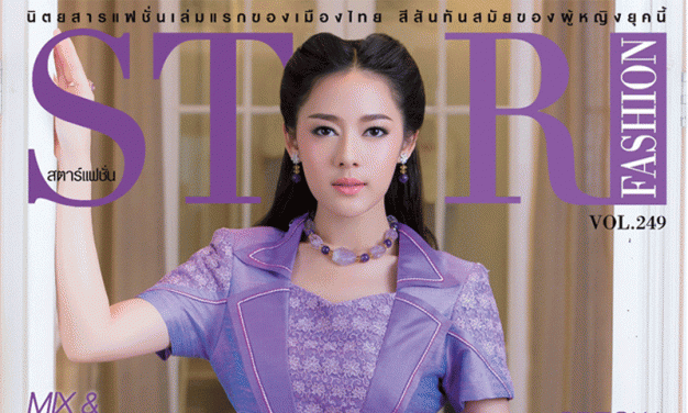 ทับทิม-อัญรินทร์กับแฟชั่นชุดผ้าไทยสีม่วงสวยสง่าขึ้นปกนิตยสารสตาร์แฟชั่น ฉบับ 249