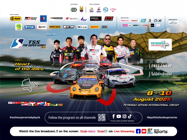บริษัท เรซซิ่ง สปิริต จำกัด ในฐานะผู้จัดการแข่งขันรายการ TSS The Super Series By B-Quik 2025 ซึ่งเป็นรายการแข่งขันรถยนต์ทางเรียบระดับนานาชาติ ได้รับการรับรองมาตรฐานการแข่งขันจากสหพันธ์รถยนต์ระหว่างประเทศ (FIA) และราชยานยนต์สมาคมแห่งประเทศไทย ในพระบรมราชูปถัมภ์ สมาคมกีฬา (ร.ย.ส.ท.) โดยสนามนี้เป็นการแข่งขันเฉพาะรุ่น TSS Supercar GT3/GTM และ GT4 ซึ่งเป็นอิเวนต์ที่สาม จะจัดขึ้นระหว่างวันที่ 8-10 สิงหาคม 2568 ณ สนาม Petronas Sepang Internationa, ประเทศมาเลเซีย ..