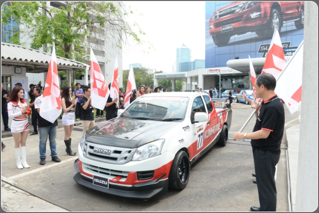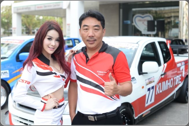 นายเอกพงษ์ ลิมปวรกุล ผู้จัดการฝ่ายขาย ผลิตภัณฑ์ คึมโฮ ไทร์ บริษัท ต.สยาม คอมเมอร์เชียล จำกัด ผู้นำเข้าและจัดจำหน่ายยางคึมโฮ ร่วมเปิดตัวขบวนรถแข่ง รายการ “Nitto 3K Kumho Isuzu Full Race 2015” จัดส่ง ยางคึมโฮ Slick (สลิก) S700 และ W700 ประจำการรถแข่ง ISUZU FULL RACE พร้อมพิสูจน์สมรรถนะความยึดเกาะถนน สร้างสถิติความเร็วใหม่ ยางตัวจริงสำหรับนักแข่ง ตลอดฤดูกาลแข่งขัน และเป็นครั้งแรกของรายการ Nitto 3K ที่ได้ใช้ยาง Slick (สลิก) ในการแข่งขัน |