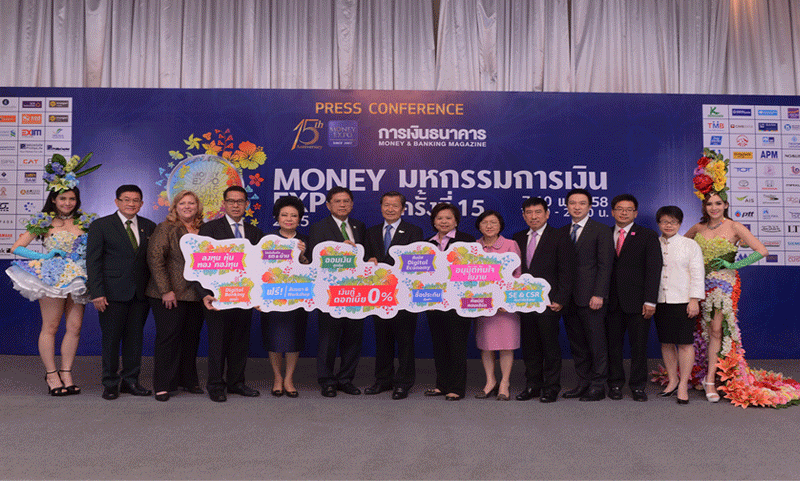 นายสันติ วิริยะรังสฤษฏ์ ประธานบรรณาธิการ การเงินธนาคาร ประธานจัดงานมหกรรมการเงิน Money Expo พร้อมด้วยผู้บริหารจากธนาคารและสถาบันการเงินชั้นนำ ร่วม แถลงข่าวการจัดงานมหกรรมการเงิน ครั้งที่ 15 Money Expo 2015 ภายใต้แนวคิด “Beautiful Banking” โดยธนาคารและสถาบันการเงินพร้อมส่งแคมเปญเด่น “เงินกู้ดอกเบี้ยเริ่มต้น 0%-อนุมัติทันทีในงาน” นำเสนอให้กับผู้เข้าชมงาน ซึ่งงานมหกรรมการเงิน ครั้งที่ 15 จะจัดขึ้น ในวันที่ 7-10 พฤษภาคม 2558 ที่ ชาเลนเจอร์ 2-3 อิมแพ็ค เมืองทองธานี Money Expo 2015 ฉลองยิ่งใหญ่ครบรอบ 15 ปี