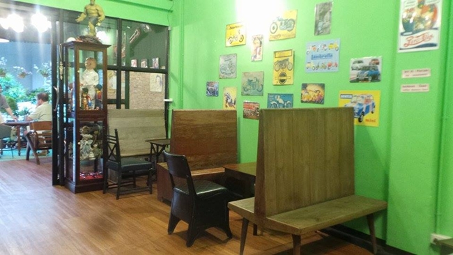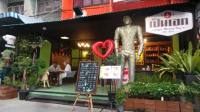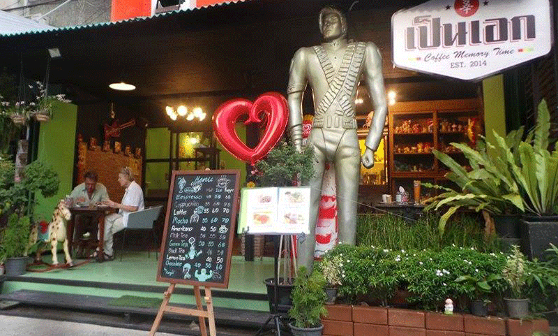 ผ่านไปแถวไหนมักมีร้านกาแฟให้เลือกนั่งพักผ่อนกัน แต่จะมีสักกี่แห่งที่มีจุดเด่นเฉพาะตัวเหมือนกับที่ ร้านกาแฟ “เป็นเอก Coffee Memory Time“แถวบางรัก เพราะได้รับการตกแต่งอย่างมีสไตล์ด้วยของเก่าสะสมที่หายาก พร้อมกับนั่งชิมกาแฟที่คัดสรรอย่างดี เพื่อให้สัมผัสกับบรรยากาศย้อนยุคและที่สำคัญของเก่าทุกชิ้นสามารถซื้อกลับบ้านได้ ชิมกาแฟแชร์ของเก่า..ล้ำค่า เมื่อมาถึงที่ร้านกาแฟ “เป็นเอก”จะเห็นว่าได้รับการออกแบบอย่างลงตัว โดยด้านหน้าร้านจะประดับตกแต่งด้วยสวนต้นไม้ขนาดย่อม และโดดเด่นด้วยหุ่นไมเคิล แจ๊คสัน ด้วยชุดสีทอง ที่มีความสูง 240 ซม. ซึ่งมีเพียงชิ้นเดียวที่เคยยืนตระหง่านในงานแสดงคอนเสริ์ตของไมเคิล แจ๊คสัน ที่เมืองทองธานีเมื่อปี 2536 จัดเป็นคอนเสริ์ตครั้งแรกและครั้งเดียวในไทย ![]() ส่วนที่นั่งมีให้เลือกในแบบโอเพ่นแอร์ ใช้โทนสีน้ำตาลเข้ม ประดับด้านข้างด้วยโปสเตอร์หนังสมัยเก่าที่หายาก พร้อมตู้โชว์ตุ๊กตาเด็กเล่นมากมายหลายชิ้น ,โมเดลรถโบราณ และหุ่นอัศวิน ขณะที่อีกมุมตกแต่งด้วยปูนเปลือยแบบอิฐแดงติดป้ายไฟรูปกีตาร์ โดยจัดโต๊ะเก้าอี้ไม้เก่าอายุเกิน 30 ปีที่มีให้เลือกนั่งประมาณ 5 ที่ แถมที่เขี่ยบุหรี่ยังเป็นรูปทรงจรวดที่ไม่เคยเห็นมาก่อน ![]() ภายในร้านเน้นโทนสีเขียวสด พอเปิดประตูเข้าไปมีตู้โชว์กระจกขนาบสองข้างที่มีจัดวางตุ๊กตาหลากหลายชนิดเต็มไปหมด ขณะที่ฝาผนังติดแปะด้วยป้ายสังกะสีรูปมอเตอร์ไซค์ ทั้งอินเดียน, นอร์ตัน และไทรอัมพ์ ที่สำคัญโต๊ะเก้าอี้นั่งจะมีปรับเปลี่ยนใหม่ทุกเดือนเพื่อไม่ให้จำเจ แต่เป็นของเก่าที่มีอายุหลายสิบปี ![]() และตู้โชว์โมเดลรถของเล่นนับไม่ถ้วน พร้อมจับโมเดลหุ่นมดแดงกับมดเขียว มาแอคท่าอยู่บนหลังตู้ โชว์ตุ๊กตามิกกี้เมาส์ ,โมเดลขนาดเล็กมดแดง , มดเขียว , โมเดลรถเวสป้า , ตุ๊กตาไอที และด้านในจะพบเจอกับมอเตอร์ไซค์ Lambretta ปี 1950 ราคา 250,000 บาท และรถจักรยานถีบในสไตล์รถมอเตอร์ไซค์จากอังกฤษ ที่มีราคา 25,000 บาท รวมถึงหุ่นดาร์กไวเดอร์ และหุ่นยอดมนุษย์แกะจากไม้ ![]() สำหรับกาแฟของที่นี่ได้รับการคัดสรรมาอย่างดี ไม่ว่าจะเป็นเอสเปรสโซ่ ,อเมริกาโน่ ,ลาเต้ , มอคค่า , คาปูชิโน่ และมัชฉะลาเต้ ที่มีให้ชิมทั้งแบบร้อนราคา 40 บาท แบบเย็นราคา 50 บาท และสมูทตี้ราคา 60 บาท ด้วยรสชาติที่กลมกล่อม หรือถ้าชอบแบบชายังมีทั้งชาเขียว ชามะนาว ช็อคโกแลต และนม รวมไปถึงผู้ที่รักสุขภาพมีน้ำผลไม้ปั่นให้เลือกด้วยในราคา 60 บาทไม่ว่าจะเป็น กีวี , แอ๊ปเปิ้ล , แคนตาลูป ,กล้วย ,แตงโม ,แครอท ,มะเขือเทศ และส้ม รับรองดื่มแล้วชื่นใจหายเหนื่อยทันที 