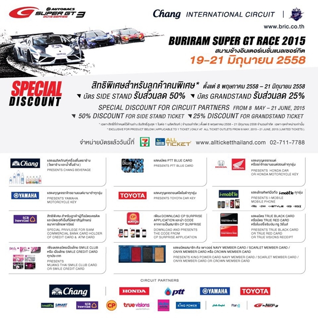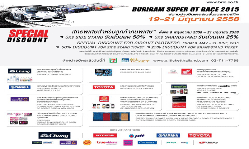 “บุรีรัมย์ ซูเปอร์ จีที 2015” เปิดขายตั๋วแล้ว เริ่มต้นแค่ 300 บาท