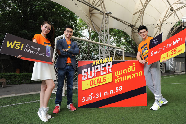 อนันดาฯ ส่งโปรฯแรง “Ananda Super Deals แม็ตช์นี้ ห้ามพลาด” คอนโดใกล้รถไฟฟ้า บ้าน ทาวน์เฮ้าส์ พร้อมอยู่ พร้อมโอน ผ่อน 999 บาท นาน 2 ปี ตั้งแต่วันนี้-31 ต.ค.นี้เท่านั้นกรุงเทพ - คุณพงศ์อนันต์ สุขเกษม ผู้ช่วยกรรมการผู้จัดการใหญ่ ฝ่ายการตลาด บริษัท อนันดา ดีเวลลอปเม้นท์ จำกัด (มหาชน) ผู้นำตลาดคอนโดมิเนียมติดรถไฟฟ้า จัดแคมเปญพิเศษ “Ananda Super Deals แม็ตช์นี้ ห้ามพลาด” พร้อมรับโปรโมชั่นสุดฮอต ผ่อน 999 บาท นาน 2 ปี พร้อมอยู่ พร้อมโอน ฟรีทุกค่าใช้จ่ายวันโอน และส่วนลดสูงสุด 350,000 บาท ตั้งแต่วันนี้ – 31 ต.ค. 58 นี้เท่านั้น กับ 7 โครงการคอนโดใกล้รถไฟฟ้า แต่งครบ ได้แก่ เอลลิโอ เดลเรย์, เอลลิโอ สุขุมวิท 64, ไอดีโอ สาทร-ท่าพระ, ไอดีโอ วุฒากาศ, ไอดีโอ สุขุมวิท 115, ไอดีโอ โอ ทู, ยูนิโอ จรัญ 3, และ 3 โครงการบ้านเดี่ยว และทาวน์เฮ้าส์พร้อมอยู่ กับโครงการ เอโทล จาวา เบย์, เอโทล มัลดีฟส์ บีช และโครงการเอโทล บาหลี บีช ในราคาเริ่มต้น 1.35-7 ล้านบาท พร้อมรับข้อเสนอสุดพิเศษอีกมากมาย สามารถเข้าเยี่ยมชมโครงการได้ที่ Sales Gallery ทั้ง 10 โครงการ สอบถามข้อมูลเพิ่มเติมที่ 02–316-2222 หรือ www.ananda.co.th