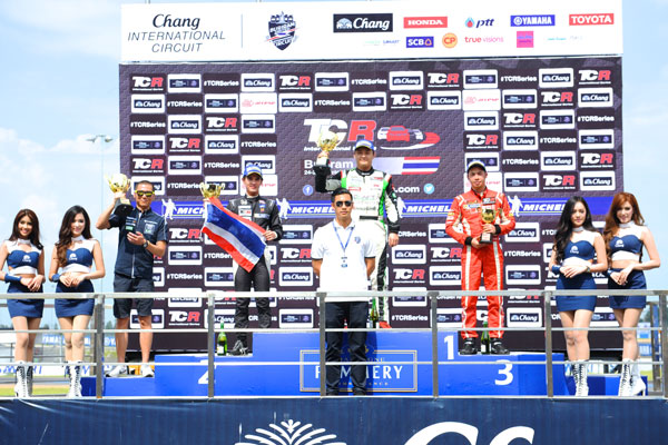 บุรีรัมย์ -25/10/2015- “เทอร์โบ” มั่นคง เสถียรกิระกุล ยอดนักขับไทยจากสังกัด คราฟ แบมบู เรซซิ่ง ผงาดคว้าชัยชนะในศึก ทีซีอาร์ เอเชีย ซีรีส์ เรซแรก พาเพลงชาติไทยดังกระหึ่ม สนามช้าง อินเตอร์เนชั่นแนล เซอร์กิต จ.บุรีรัมย์ ขณะแชมป์ ทีซีอาร์ อินเตอร์เนชั่นแนล ซีรีส์ เป็นของ เปเป้ ออริโอล่า นักขับสแปนิช จากเกมเมื่อช่วงบ่ายวันอาทิตย์ที่ผ่านมา