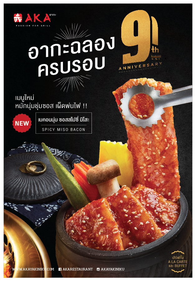 อากะฉลอง 9 ปี เสิร์ฟเมนูใหม่ "สไปซี่ มิโสะ เบคอน” หมักนุ่ม ชุ่มซอส เผ็ดพ่นไฟ!! อากะต้นตำรับอาหารปิ้งย่างสไตล์