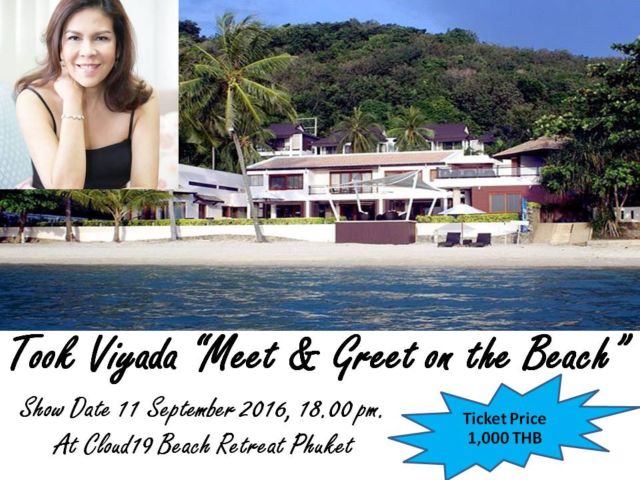 โศรยา บุนนาค เซเลปนักธุรกิจโรงแรมชื่อดัง Cloud19 Beach Retreat Phuket ผุดไอเดียจัดมินิคอนเสิร์ต Meet & Greet โดยมี ตุ๊ก วิยะดา โกมารกุล ณ นคร นักร้องดีวาส์ระดับตำนานที่มีเสียงเป็นเอกลักษณ์พร้อมจะมาขับกล่อมบทเพลงกับบรรยากาศสุดชิลริมทะเลแบบเป็นกันเอง อีกทั้งยังสามารถใกล้ชิดกับ ตุ๊ก วิยะดา แบบเอ็กซ์คลูซีฟที่รับรองได้ว่าไม่มีที่ไหนมาก่อนอย่างแน่นอนและที่สำคัญฟรีอาหารและเครื่องดื่มตลอดทั้งงาน