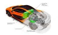 อะไร กันนี่! หลายท่านคงจะตะลึงเพราะว่า Mclaren P1 มาพร้อมกับเครื่องยนต์ V-8 แต่ความสามารถของตัวมัน สามารถขึ้นไปเป็นคู่ต่อสู้ของรถซูเปอร์คาร์เครื่อง V12 ของ Ferraris และ Lamborghini ได้ …แต่ไม่เพียงแค่นั้นความพิเศษของ แม็คลาเรน P1 คันนี้คือ บริษัทแม็คลาเรน สัญชาติอังกฤษ เจ้านี้ยังนำเอาซุปเปอร์คาร์ไฮบริดปลั๊กอินเข้ามาทำงานร่วมกับเครื่องยนต์ ทำให้ผลที่ได้คือทำ ให้รถสามารถให้กำลังสูงถึง 903 แรงม้า (จากเครื่องยนต์ V8 รหัส M838T ให้กำลัง 727 แรงม้าที่ 7000 รอบ/นาที รวมกับกำลังจากมอเตอร์ไฟฟ้า 176 แรงม้า) จากแรงบิดสูงสุด 900nm (664 ปอนด์ฟุต)รถ คันนี้ยังสามารถลดอัตราการปล่อยคาร์บอนไดออกไซด์ออกสู่อากาศได้ดีเยี่ยมอีก ด้วย เจ้าไฮเปอร์คาร์ไฮบริดคันนี้ใช้ระบบส่งกำลังเชื่อมต่อกับระบบเกียร์แบบ 7 สปีดคลัทช์คู่ + อีกหนึ่งคลัทช์เดี่ยวสำหรับมอเตอร์ไฟฟ้า ซึ่งโดยปกติระบบการส่งกำลังของรถนั้นจะเป็นการทำงานร่วมกันของเครื่องยนต์ และมอเตอร์ไฟฟ้า แต่หากว่าผู้ขับจะเลือกไปใช้ระบบที่เรียกว่า E-MODE ซึ่งเป็นระบบที่รถจะวิ่งด้วยมอเตอร์ไฟฟ้าแบบล้วน ๆ ซึ่งเมื่อผู้ใช้นั้นขับในระบบนี้แล้วจะสามารถขับไปได้ถึง 20 กิโลเมตร โดยต้องขับที่ความเร็วเฉลี่ย 50 กิโลเมตร /ชั่วโมง แต่เมื่อพลังงานจากแบตเตอรี่อ่อนลงเครื่องยนต์ก็จะติดและทำงานเองโดย อัตโนมัติ พลังงานที่มอเตอร์ไฟฟ้าผลิตได้นั้น จะถูกนำไปเก็บไว้ที่แบตเตอรี่ความหนาแน่นสูงจำนวน 324 เซลล์ ที่ตั้งอยู่ด้านหลังของห้องโดยสาร โดยแบตเตอรี่สามารถชาร์จด้วยเครื่องยนต์หรือเสียบผ่านอุปกรณ์ภายนอก และสามารถชาร์จได้เต็มในเวลาสองชั่วโมง Mclaren P1 มาพร้อมกับสองคุณสมบัติจากรถ Formula 1 : The Instant Power Assist System (IPAS) เป็นปุ่มสีแดงที่ พวงมาลัยทำให้รู้สึกเหมือนกับ F1 สไตล์ คุณสมบัติของปุ่มนี้ก็คือ เมื่อกดระบบจะปล่อยพลังงานไฟฟ้าเต็มที่ไปที่ระบบขับเคลื่อน ฟังดูแล้วระบบนี้ก็จะเหมือนกับระบบ KERS ที่ใช้ใน Formula 1 จะต่างกันตรงที่ KERS คือเป็นการนำพลังงานที่สูญเปล่าที่เกิดขึ้นระหว่างการเบรก รวมไปถึงการถอนคันเร่ง แต่ IPAS จะเป็นการนำพลังงานที่เหลือจากเครื่องยนต์ ซึ่งจะช่วยเพิ่มแรงม้าออกไปถึง 176 แรงม้าเลย ทีเดียว ปุ่มนี้เหมาะสำหรับการต้องการอัตราเร่งความเร็วที่เหนือกว่า ไม่ว่าจะเป็นการออกตัวหรือเร่งแซงเองก็ตาม อีก ระบบที่นำมาจากรถสูตร 1 คือ Drag Reduction System (DRS) เป็น ปุ่มน้ำเงินที่พวงมาลัยเป็นระบบที่ช่วยให้ลดแรงต้านจากอากาศช่วยเพิ่ม ให้รถวิ่งที่ความเร็วสูงขึ้น เมื่อกดปุ่มนี้แพนอากาศด้านหลังที่ติดอยู่ปีกหลัง(สปอยเลอร์หลัง) ของ P1 ลดมุมต่ำลงจนถึง 0 องศา ผลที่ได้คือลดแรงเสียดทา