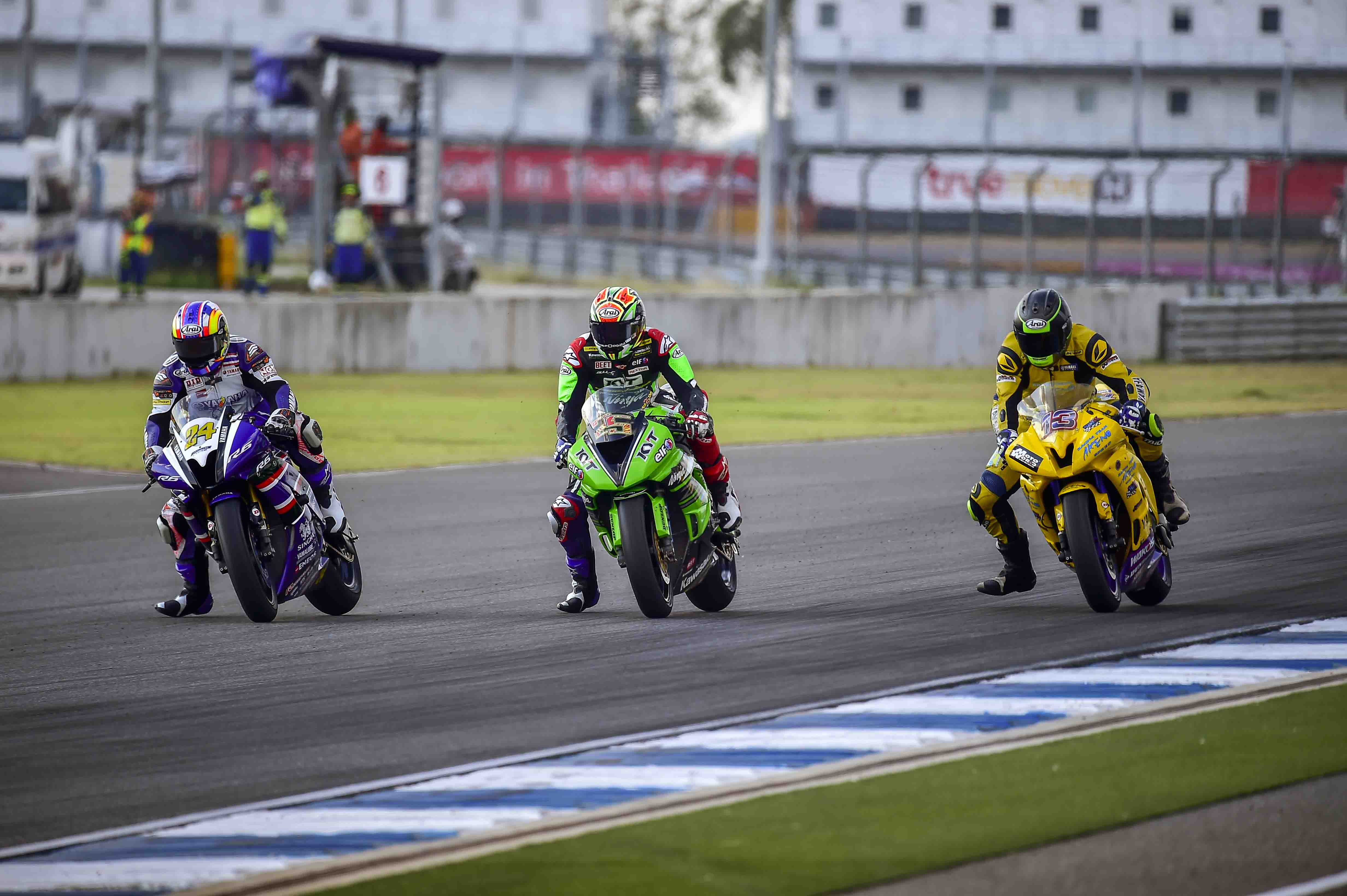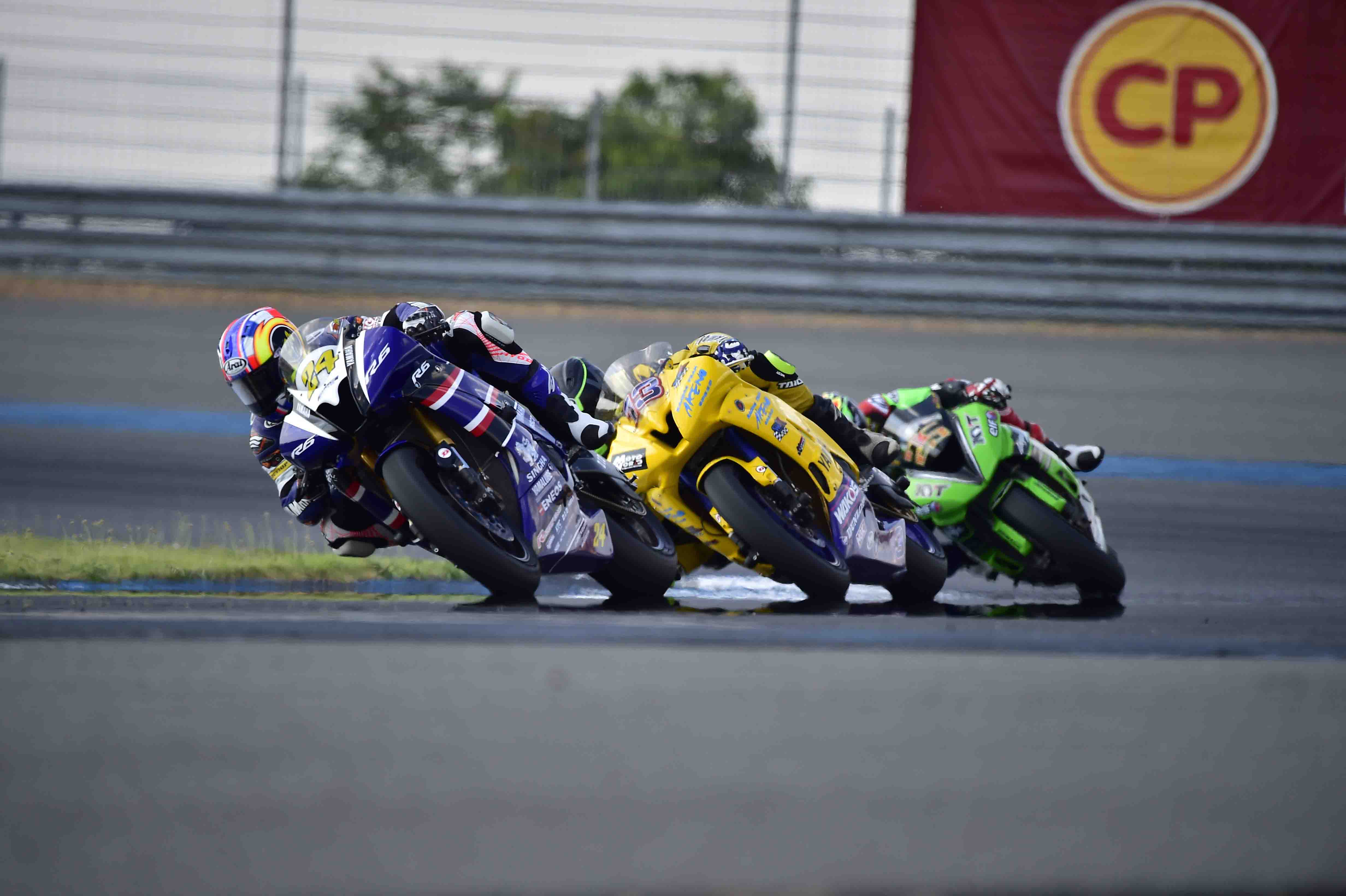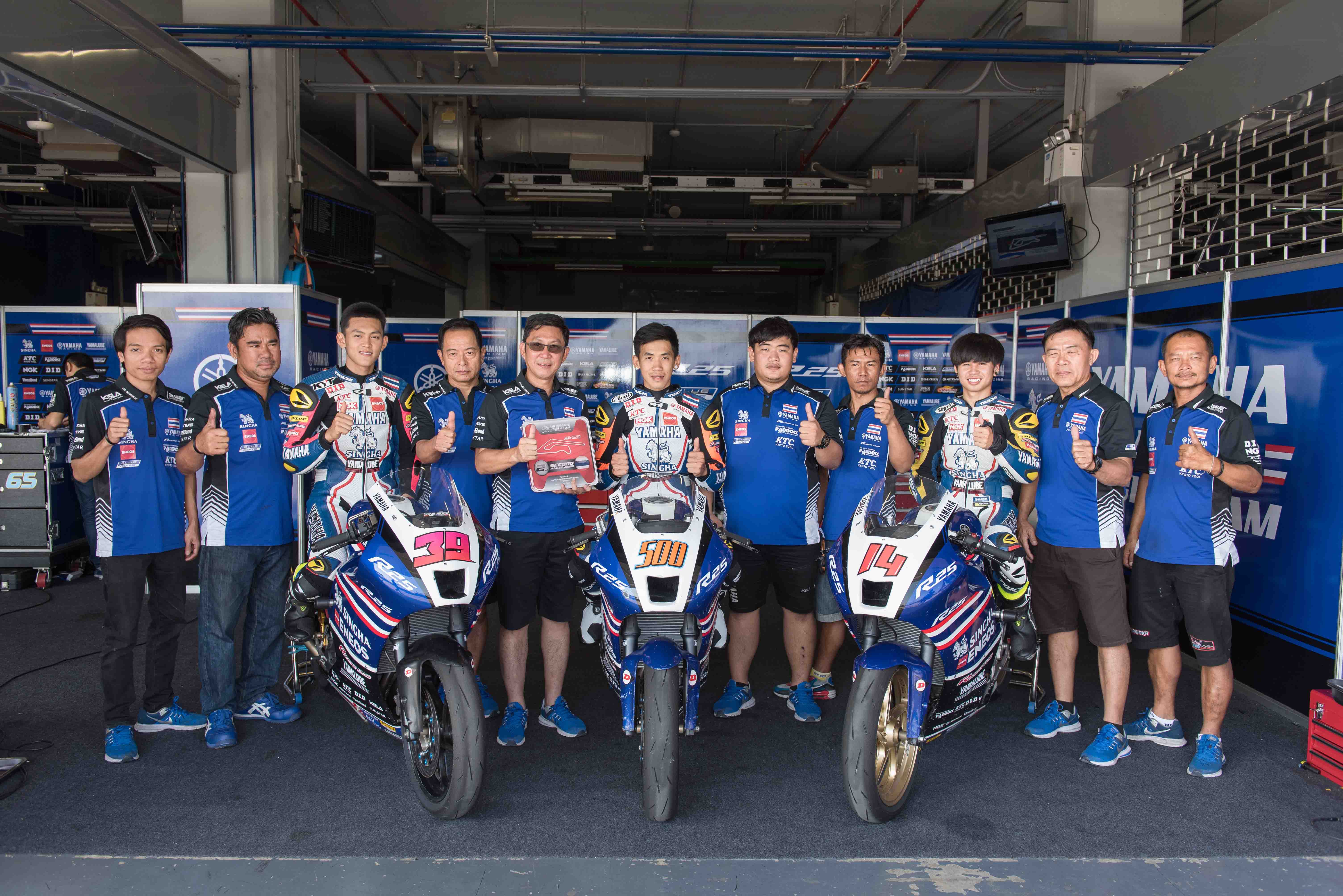 นักบิดสังกัด YAMAHA THAILAND RACING TEAM สวมหัวใจนักสู้สุดแกร่ง กระชากคันเร่งรถแข่ง R-Series ไล่บู๊เบียดสู้กับคู่แข่งได้แบบสุดมันส์ ก่อนผงาดยืนโพเดี้ยมได้สำเร็จทั้งรุ่นเล็กและรุ่นใหญ่ โดยในรุ่น SuperSports 600 cc ตั้น - เดชา ไกรศาสตร์ #24 ฝืนอาการบาดเจ็บที่ข้อมือเบียดสู้กับคู่แข่งฝีมือพระกาฬระดับโลกจนถึงวินาทีสุดท้าย ก่อนนำรถแข่ง YZF-R6 ทะยานเข้ารับธงตราหมากรุกคว้าอันดับที่ 2