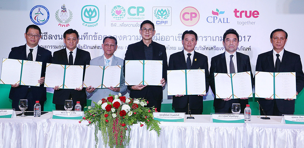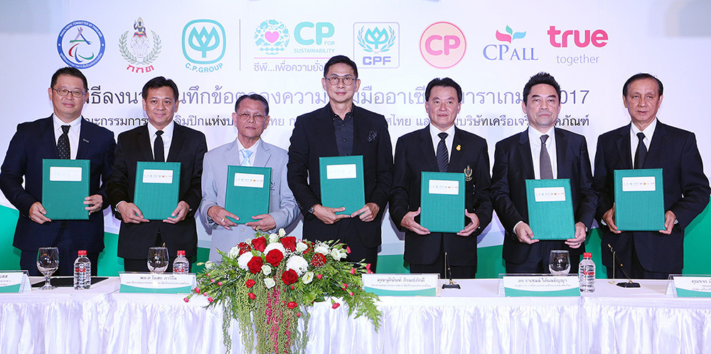 เครือเจริญโภคภัณฑ์ ผนึกกำลัง ซีพีเอฟ, ซีพี ออลล์ และ ทรู คอร์ปอเรชั่น ลงนามบันทึกข้อตกลง กับคณะกรรมการพาราลิมปิกแห่งประเทศไทย และการกีฬาแห่งประเทศไทยเป็นผู้สนับสนุนหลักด้านอาหารและการสื่อสารอย่างเป็นทางการ แก่ทัพนักกีฬาคนพิการทีมชาติไทย เพื่อสู้ศึกอาเซียนพาราเกมส์ 2017 ที่ประเทศมาเลเซีย