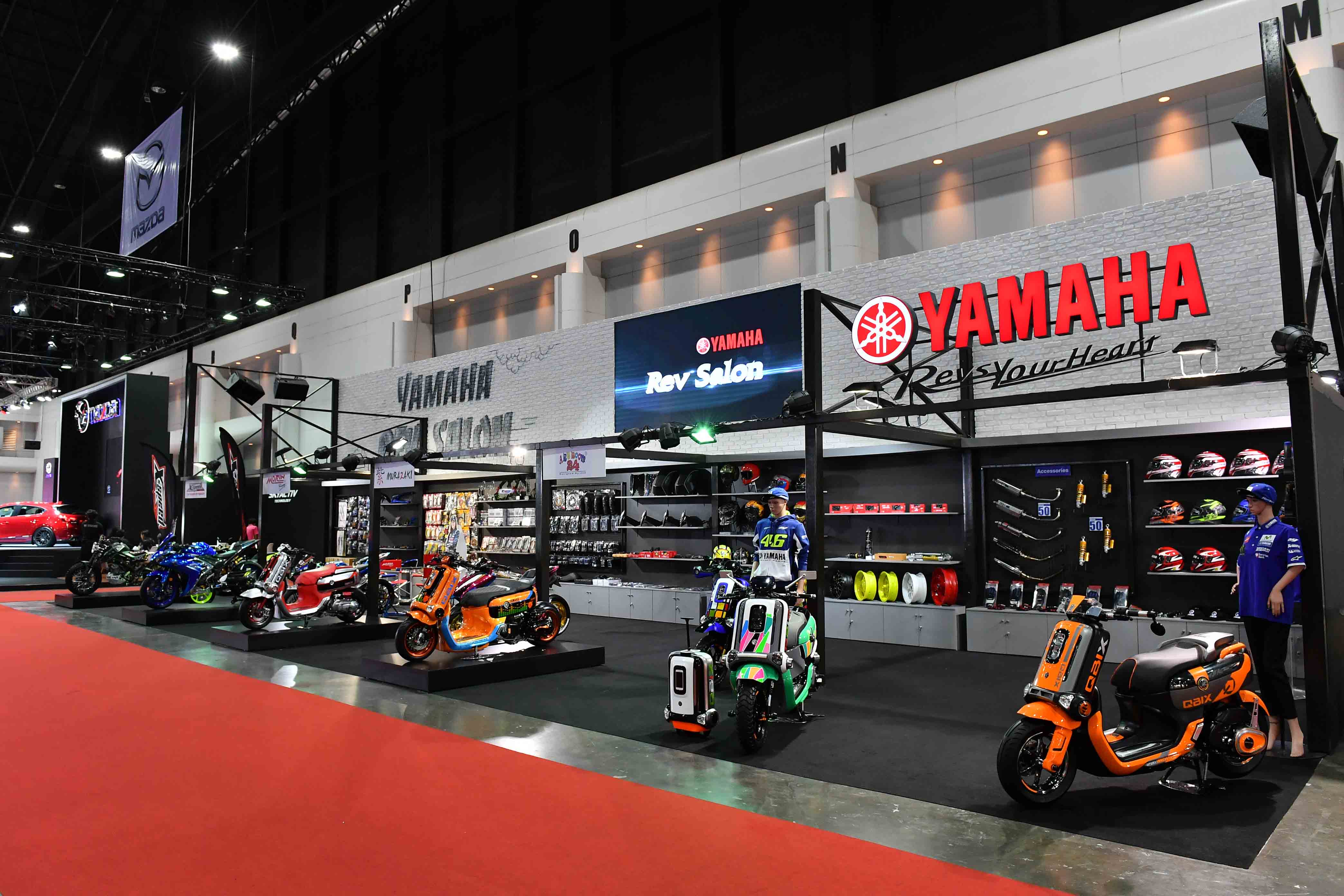 พิเศษสุด สำหรับบูธยามาฮ่า “Yamaha Rev Salon” ในปีนี้ ถูกเนรมิตขึ้นภายใต้แนวคิดที่ต้องการให้ผู้เข้าชมบูธเกิดแรงบันดาลใจจากกองทัพรถยามาฮ่า ซึ่งได้รับการตกแต่งจาก 4 สำนักแต่งชื่อดังของเมืองไทย ไม่ว่าจะเป็น สำนักแต่ง X-Speed, Morin Racing, Murazaki และ Art Room 24 Designed by Joe ที่แต่งรถหลากรุ่นให้เลือกสัมผัส สามารถนำไอเดียที่ได้รับไปต่อยอดในการตกแต่งรถคู่ใจให้มีเอกลักษณ์เฉพาะตัว โดยทัพรถแต่งที่ยามาฮ่านำมาจัดแสดงภายในบูธครั้งนี้ ประกอบไปด้วย Yamaha QBIX, Yamaha AEROX 155, Yamaha M-SLAZ, Yamaha YZF-R3 และ Yamaha YZF-R15 นอกจากนี้ยามาฮ่าได้เตรียมโปรโมชั่น สำหรับสินค้า Apparel & Accessories ราคาพิเศษ ลด 10-50% เพื่อให้สาวกยามาฮ่าได้เลือกสรรอย่างมากมาย อาทิ · โช้คอัพ OHLINS ราคาพิเศษ 4,900 บาท · ท่อไอเสีย OVER ราคาพิเศษ 4,900 บาท · เสื้อโปโล MotoGP Special Collection ราคาเพียง 1,850 บาท · หมวกแก๊ป MotoGP Special Collection ราคาเพียง 525 บาท ฯลฯ