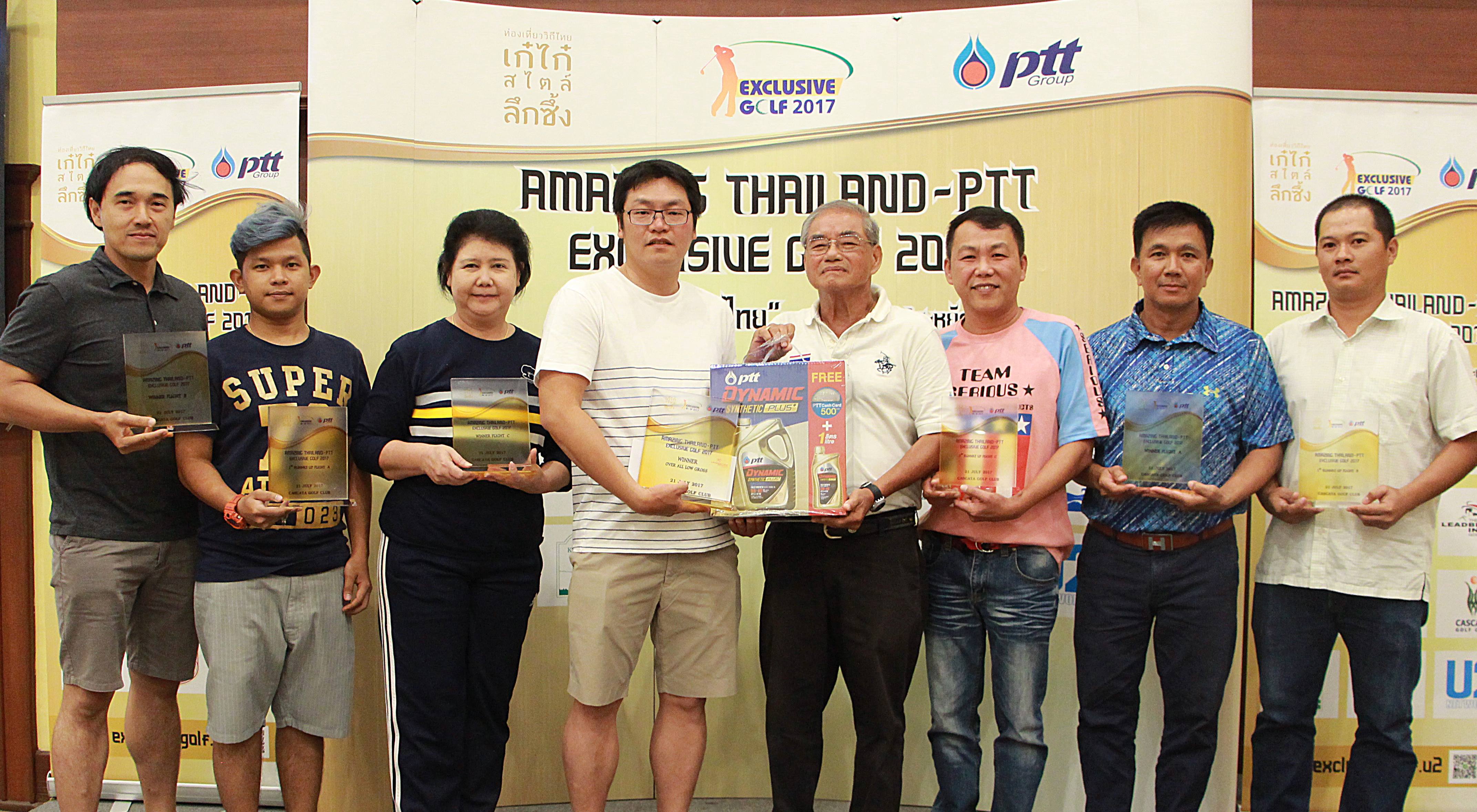 กมล บุญชื่น โชว์ฟอร์มเจ๋งขึ้นแท่นแชมป์กอล์ฟสมัครเล่นรายการ “อะเมซิ่ง ไทยแลนด์ - พีทีที เอ็กซ์คลูซีฟ กอล์ฟ 2017” ที่สนามคาสคาต้า วันที่ 21 ก.ค. 60 ณ สนามคาสคาต้า กอล์ฟ คลับ จ.นครนายก นายชยากร แสงอรุณ อดีตผู้บริหาร บริษัท ปตท. จำกัด (มหาชน) มอบรางวัลพร้อมแสดงความยินดีกับนักกอล์ฟที่ได้รับรางวัลในการแข่งขัน “อะเมซิ่ง ไทยแลนด์ - พีทีที เอ็กซ์คลูซีฟ กอล์ฟ 2017” สนาม3 กอล์ฟราคาประหยัด 999 บาท โดย การท่องเที่ยวแห่งประเทศไทย และ บริษัท ปตท. จำกัด (มหาชน) เป็นผู้สนับสนุนหลัก บรรยากาศในการแข่งขันอากาศสบายๆ ไม่มีแดดตลอดการแข่งขัน ช่วงเวลาแข่งขันเป็นไปอย่างสนุกสนานไหลลื่นไม่มีแม้แต่ก๊วนติด ยิ่งเป็นเพิ่มอรรถรสในเกมส์กอล์ฟมากยิ่งขึ้น อีกทั้งยังได้รับการต้อนรับอย่างดีจาก นายธนวัฒน์ ทรัพย์รุ่งเรือง ประธานสนามคาสคาต้า กอล์ฟ คลับ และทีมงานทุกคนที่คอยอำนวยความสะดวกแบบอบอุ่นประทับใจ แมทช์นี้ใช้ระบบการแข่งขันแบบสโตรคเพลย์ 18 หลุม คิดคะแนนแบบดับเบิ้ลพรีโอเรีย ซิสเต็ม จับออกรอบละ 3 หลุม เพื่อให้เกิดความยุติธรรมและเท่าเทียมกัน เริ่มทีออฟ เวลา 12.30 น. ที่คอร์ส บี และ คอร์ส ซี. หลุมที่จับออกมีดังนี้ B1, B4, B7, C3, C5, C8 ทัวร์นาเม้นท์นื้ได้รับการสนับสนุนจาก การท่องเที่ยวแห่งประเทศไทย, บริษัท ปตท. จำกัด (มหาชน), บริษัท ฮอนด้า ออโตโมบิล (ประเทศไทย) จำกัด, บริษัท สิงห์ คอร์เปอเรชั่น จำกัด ฯลฯ ผลการแข่งขันมีดังนี้ แชมป์โอเวอร์ออล โลว์กรอส นายกมล บุญชื่น สกอร์ 38-36-74 , ไฟล์ท เอ. ที่1 นายทองใบ ยศธสาร สกอร์ 39-44-83-(12.0)-71.0 , ที่2.- นายจักรพันธ์ นวมทอง สกอร์ 40-42-82-(10.8)-71.2ไฟล์ท บี. ที่1 - นายเดชา จิรวัฒน์สถิตย์ สกอร์ 41-45-86-(15.6)-70.4 , ที่2 - นายณัฏฐ์พีรยช ชินวุฒิ สกอร์ 43-47-90-(18.0)-72.0 , ไฟลท์ ซี. ที่1 - น.ส.สุภัทรา พรหมคุณ สกอร์ 47-46-93-(21.6)-71.4 , ที่ 2 - นายสมศักดิ์ สมภพสกุล สกอร์ 43-52-95-(20.4)-74.6 “อะเมซิ่ง ไทยแลนด์ - พีทีที เอ็กซ์คลูซีฟ กอล์ฟ 2017” สนาม 4 นัดดวลสวิงวันศุกร์ที่ 25 ส.ค. 2560 ณ สนามเขาเขียว คันทรี่ คลับ จ.ชลบุรี ทุกท่านสามารถชมภาพบรรยากาศการแข่งขันได้ที่ www.facebook.com/ExclusiveGolf สอบถามเพิ่มเติมที่โทร. 085-6693000 / 085-6694000