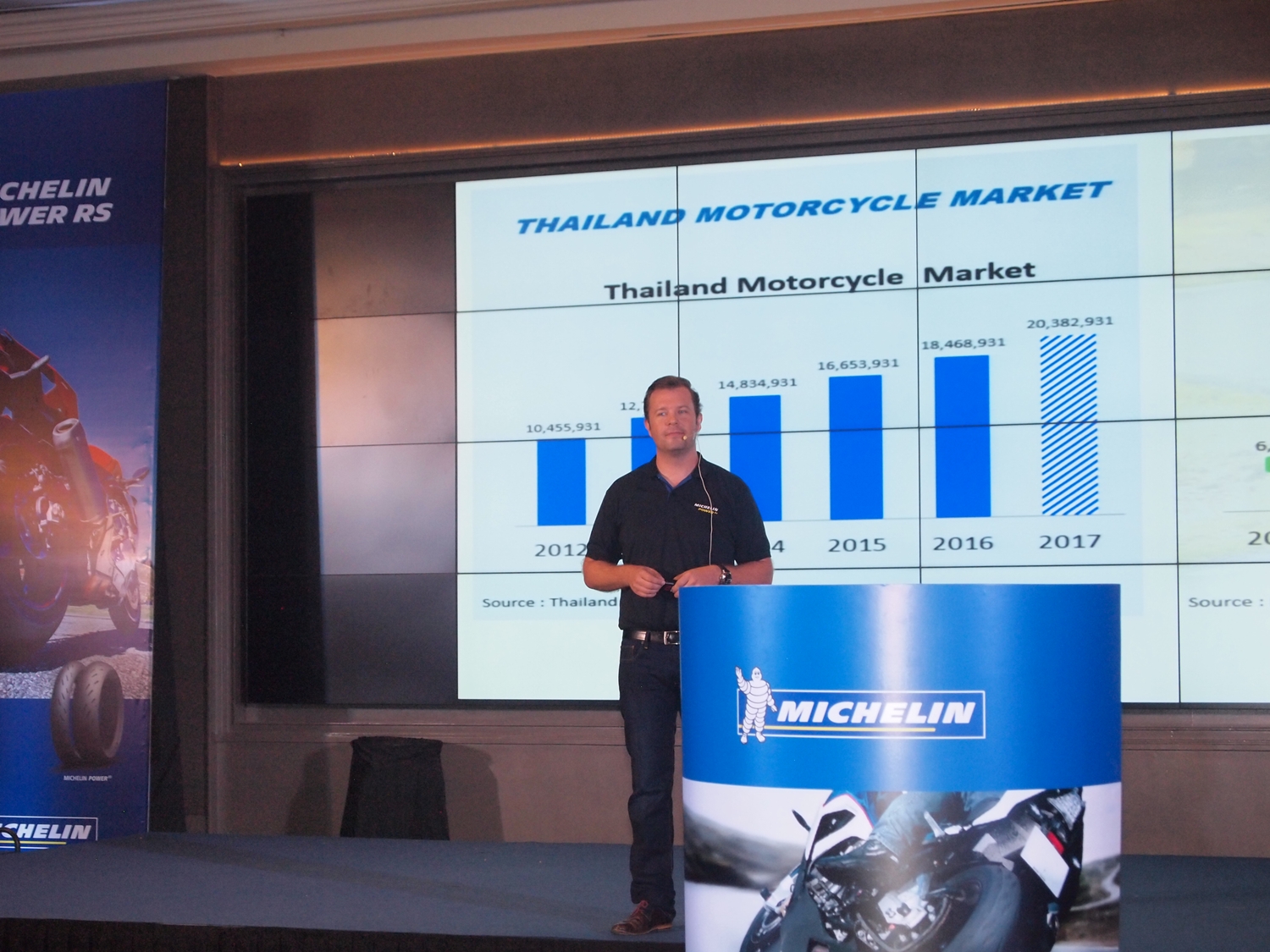 มิชลิน ได้จำหน่ายยางรถยนต์สมรรถนะสูงสำหรับใช้ในการแข่งขันโดยเฉพาะ MICHELIN Power Slick Evo ยางสำหรับสำหรับไฮเปอร์สปอร์ต (95% สนามแข่ง) MICHELIN Power Cup Evo, และยางสำหรับสปอร์ตทัวริ่ง MICHELIN Pilot Road 4 (0% สนามแข่ง) ซึ่งมิชลินเป็นผู้นำตลาด ดังนั้น การนำเสนอยางสำหรับรถจักรยานสปอร์ต MICHELIN Power RS ทำให้มิชลินตอบสนองทุกความต้องการใช้งานในตลาดประเทศไทย