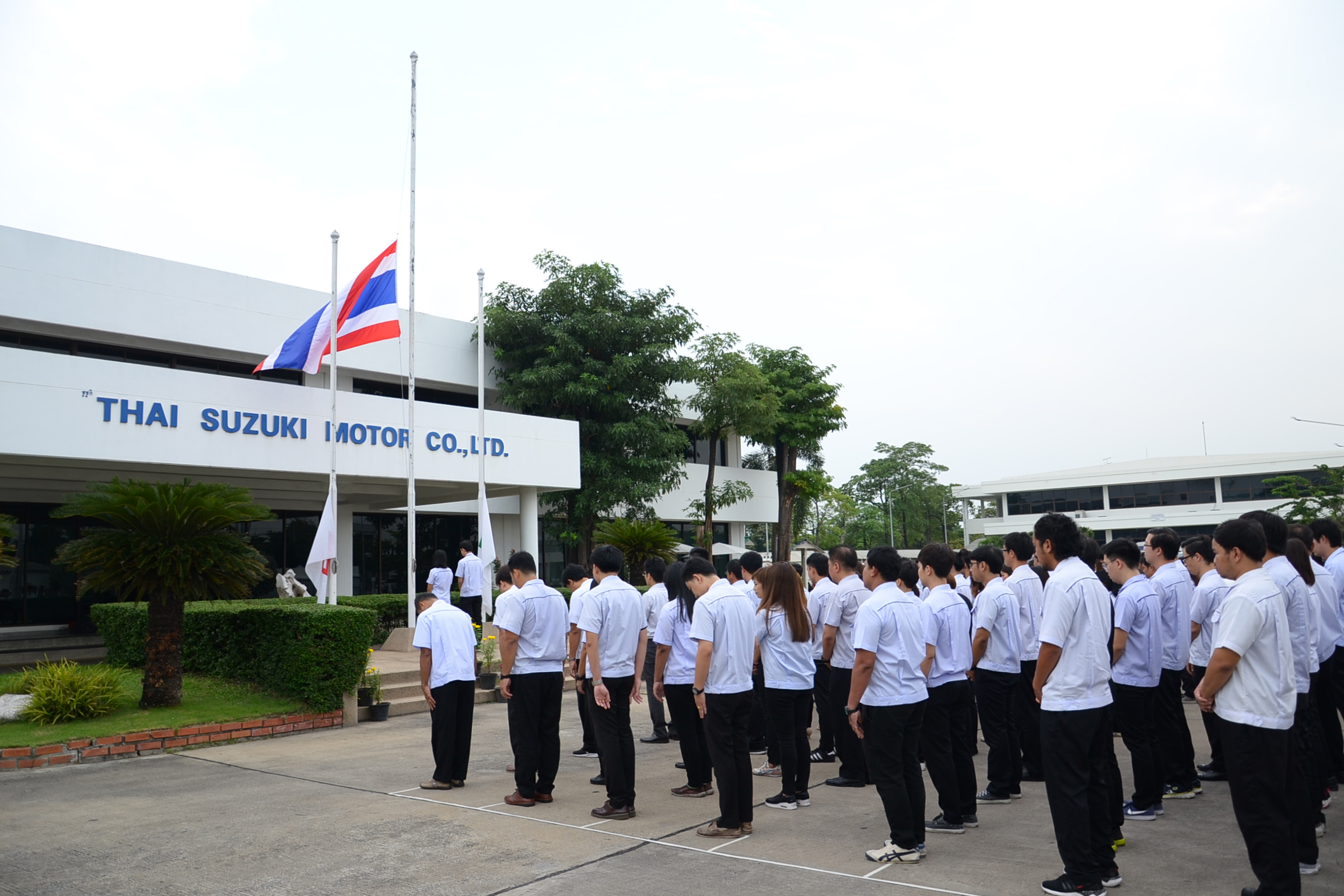 ซูซูกิ ร่วมยืนถวายความอาลัย พร้อมน้อมรำลึกในพระมหากรุณาธิคุณ รัชกาลที่ ๙คณะผู้บริหาร และพนักงาน บริษัท ไทยซูซูกิมอเตอร์ จำกัด ผู้ผลิตและจำหน่ายรถจักรยานยนต์ซูซูกิ ขอน้อมเกล้าน้อมกระหม่อมรำลึกในพระมหากรุณาธิคุณหาที่สุดมิได้ ของพระบาทสมเด็จพระปรมินทรมหาภูมิพลอดุลยเดช เนื่องในวันครบรอบเสด็จสวรรคต ด้วยการยืนเคารพธงชาติพร้อมลดธงชาติลงครึ่งเสา พร้อมร่วมกันร้องเพลงสรรเสริญพระบารมี และร่วมยืนสงบนิ่งถวายความอาลัยเป็นเวลา 89 วินาที ณ บริเวณหน้าเสาธง บริษัท ไทยซูซูกิมอเตอร์ จำกัด เมื่อวันศุกร์ที่ 13 ตุลาคม ที่ผ่านมา |