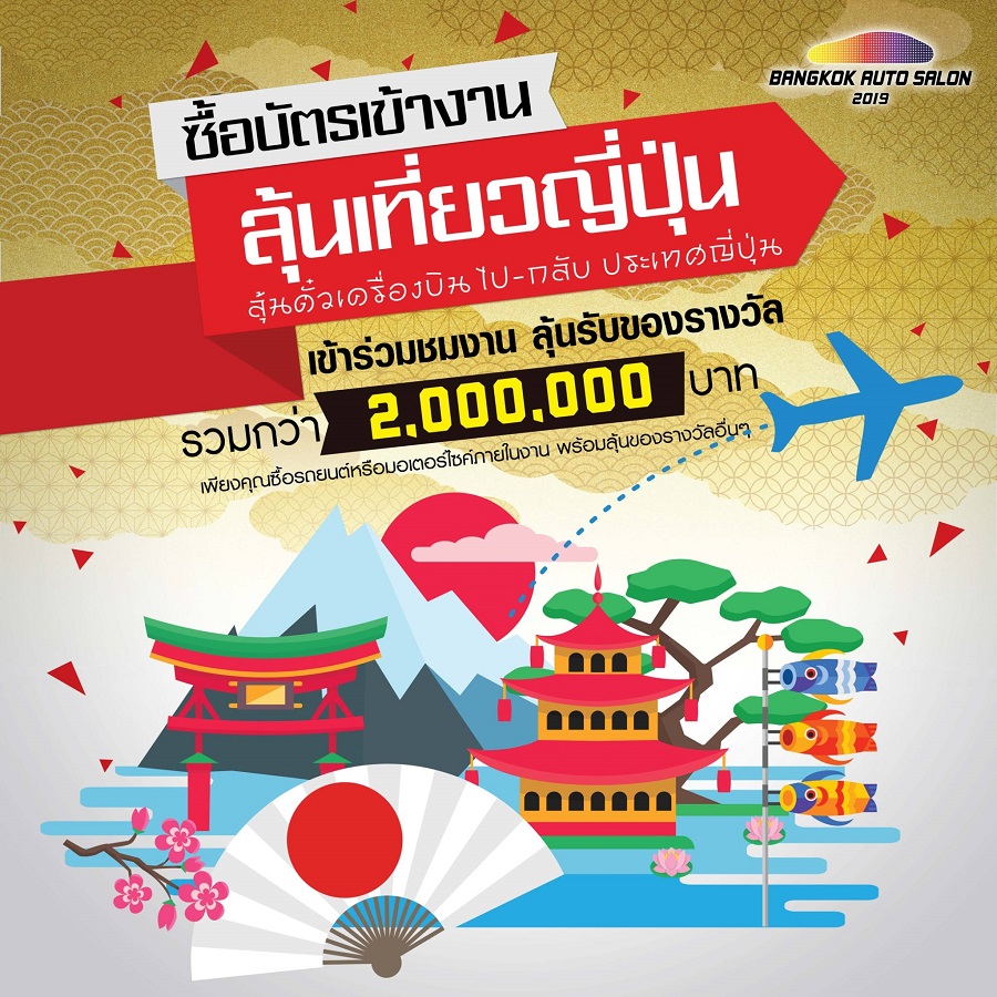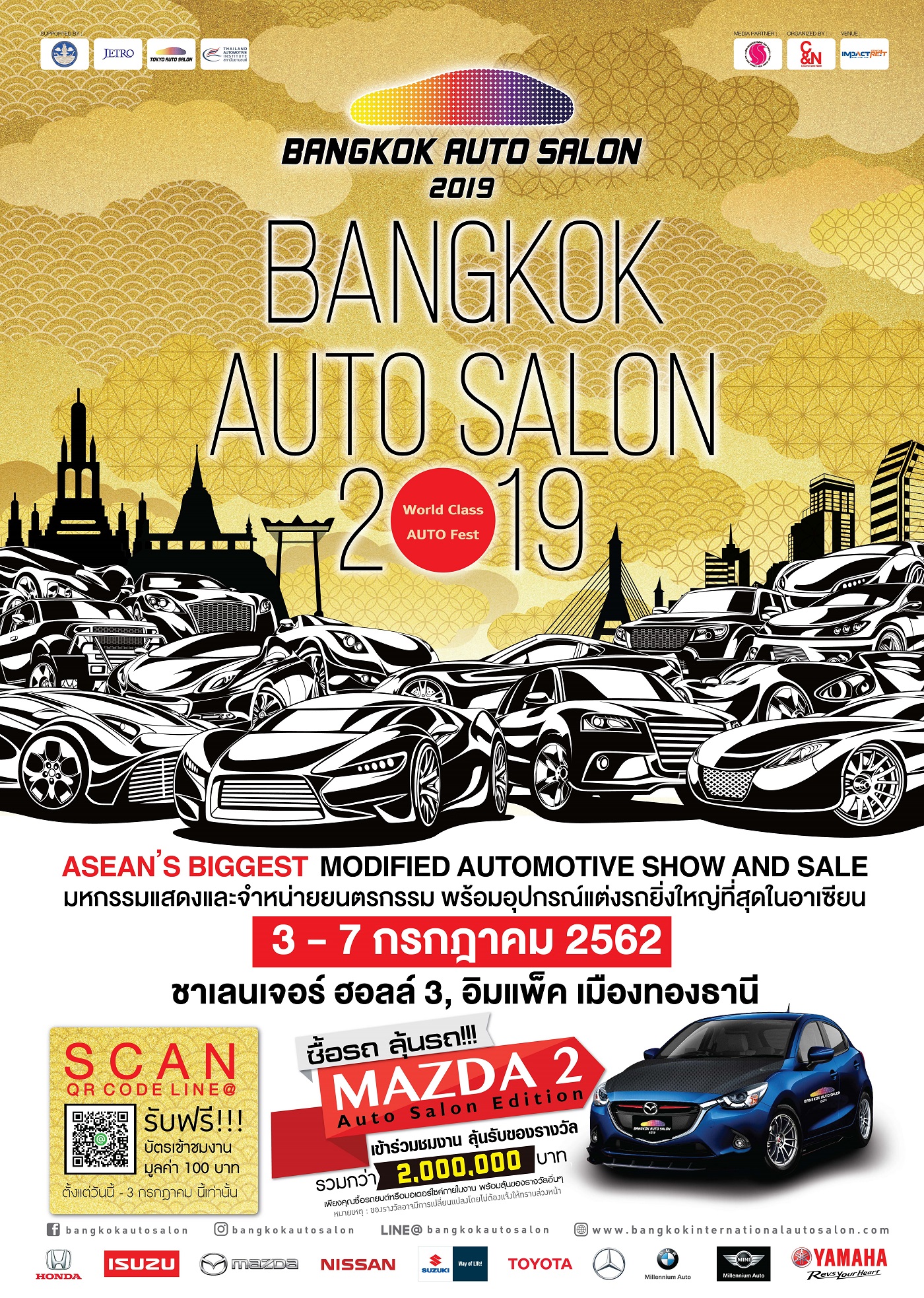 อดใจรอเดือนกรกฎาคมนี้!!! ใครมองหารถยนต์ รถจักรยานยนต์ใหม่ เตรียมตัวให้พร้อม 5 วันเท่านั้น!!! ที่จะได้พบกับที่สุดของ โปรโมชั่นสุดคุ้ม สุดเด็ด ตอบทุกความต้องการ จากค่ายรถยนต์ รถจักรยานยนต์ชั้นนำ ในงาน บางกอก อินเตอร์เนชั่นแนล ออโต ซาลอน 2019 พร้อมอุปกรณ์ตกแต่งรถยนต์ รถจักรยานยนต์ชั้นนำ พร้อมใจยกขบวน ลดกระหน่ำ ห้ามพลาด!!! ซื้อรถยนต์ รถจักรยานยนต์ ลุ้นทันที!!! มาสด้า 2 ออโต ซาลอน อิดิชั่น จากแคมเปญ ซื้อรถลุ้นรถ และรางวัลมากมายรวมมูลค่ากว่า 2ล้านบาท ท่ามกลางความสนุกแบบเฟสติวัลแห่