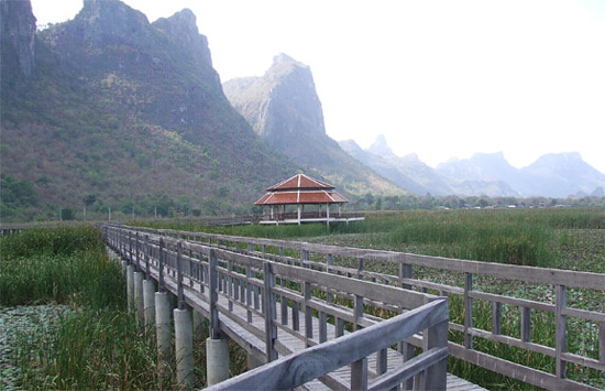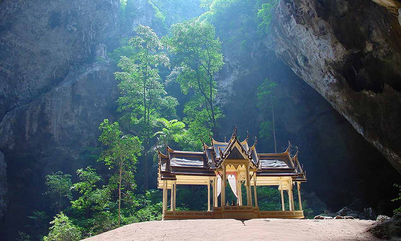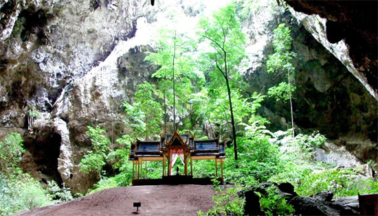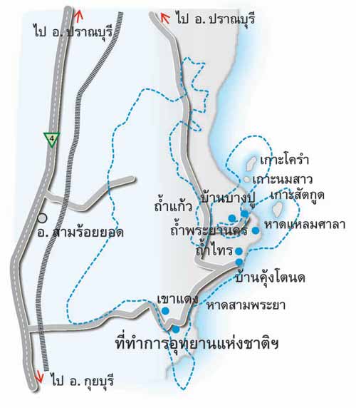 ![]() ![]() ![]() สถานที่ท่องเที่ยวที่สำคัญ ได้แก่ จุดชมวิวทิวทัศน์เขาแดง อยู่บริเวณที่ทำการอุทยานแห่งชาติเขาสามร้อยยอด ไปทางเหนือประมาณ 400 เมตร แล้วเดินเท้าขึ้นยอดเขาแดงอีกประมาณ 320 เมตร เวลาที่เหมาะแก่การขึ้นชมวิวคือตอนเช้ามืด ประมาณ 05.30 น. เพราะสามารถชมพระอาทิตย์ขึ้นเหนือขอบทะเลและชมทัศนียภาพโดยรอบได้ดี, จุดล่องคลองเขาแดง จากที่ทำการอุทยานฯ ไปทางเหนือประมาณ 1.5 กิโลเมตร บริเวณท่าน้ำหน้าวัดเขาแดงจะมีเรือจากชาวบ้านเขาแดงไว้บริการ ซึ่งใช้เวลาเดินทางไป-กลับประมาณ 1 ชั่วโมง ระหว่างทางสามารถชมธรรมชาติ เขาหินปูนที่สูงชัน (คล้ายคลึงกับกุ้ยหลินเมืองจีน) ป่าชายเลน นก สัตว์น้ำชายเลน และวิถีชีวิตชาวประมง เวลาที่เหมาะสมในการล่องเรือ คือ 16.00-17.30 น เพราะสามารถชมและถ่ายภาพยามพระอาทิตย์ลับขอบฟ้าในยามเย็น ![]() ถ้ำพระยานคร จากหาดแหลมศาลาเดินขึ้นเขาซึ่งชันไปตามขั้นบันไดอีกประมาณ 430 เมตร ก็จะถึงทางลงถ้ำพระยานคร ภายในถ้ำมี 3 คูหา มีหินงอกหินย้อยเป็นเชิงชั้นเหมือนม่าน บางส่วนก็ หยด ย้อยลงมา เป็นรูปร่างต่างๆ โดยสองคูหามี ปล่องด้านบนส่วนด้านล่างในถ้ำ เป็นป่าต้นไม้ค่อนข้างสูง ในสมัยพระบาทสมเด็จพระจุลจอมเกล้าเจ้าอยู่หัว (รัชกาลที่ 5) มีพระราชประสงค์ใคร่จะเสด็จประพาส จึงให้นายช่างประจำราชสำนัก สร้างพลับพลาแบบจตุรมุขขนาดย่อมตั้งไว้บนเนินดินกลางถ้ำ พระองค์เสด็จประพาสเมื่อวันที่ 20 มิถุนายน พ.ศ. 2433 คราวเสด็จประพาสแหลมมลายูและพระราชทานนามพลับพลานี้ว่า "พระที่นั่งคูหาคฤหาสน์" ![]() ![]() ทุ่งสามร้อยยอด อยู่ทางด้านทิศตะวันตกของพื้นที่อุทยานแห่งชาติ เป็นพื้นที่ชุ่มน้ำประเภทหนึ่งที่เป็นพื้นที่ราบลุ่มที่เกิดขึ้น เองตามธรรมชาติมีน้ำขังหรือท่วมถึงตลอดปี เป็นแหล่งที่มีองค์ประกอบทางชีวภาพ กายภาพ และเคมีที่มีเอกลักษณ์ของระบบ ซึ่งมีความหลากหลายของชนิดพืชสัตว์และธาตุอาหาร เป็นที่อยู่อาศัยและขยายพันธุ์ของนกนานาชนิด ทั้งนกประจำถิ่น นกอพยพ จึงเป็นแหล่งที่เหมาะแก่การดูนก อีกทั้งนั่งเรือชมโลมาหัวบาตร รวมทั้งมีเส้นทางศึกษาธรรมชาติป่าชายเลน ![]() การเดินทาง เส้นทางที่ 1 จากกรุงเทพมหานครไปตามทางหลวงหมายเลข 35 (ถนนสายธนบุรี-ปากท่อ) ผ่านจังหวัดสมุทรสงคราม เลี้ยวเข้าสู่ถนนทางหลวงหมายเลข 4 (ถนนเพชรเกษม) ที่อำเภอปากท่อ ผ่านจังหวัดเพชรบุรี อำเภอชะอำ และเข้าสู่อำเภอหัวหินถึงอำเภอปราณบุรี เมื่อถึงสี่แยกปราณบุรี เลี้ยวซ้ายไปตามถนนสายปากน้ำ-ปราณบุรี 4 กิโลเมตร จะเห็นป้ายบอกทางไปยังอุทยานฯ ให้เลี้ยวขวาไปตามถนน ซึ่งเป็นถนนลาดยางอีกประมาณ 31 กิโลเม