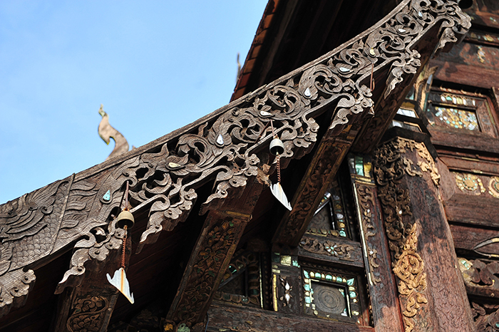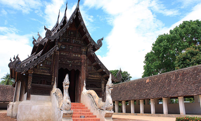 ![]() ที่ตั้งและการเดินทาง บ้านต้นเกว๋น อ.หางดง รถยนต์ส่วนตัว จากตัวเมืองเชียงใหม่ใช้ทางหลวงหมายเลข 108 (เชียงใหม่-หางดง) แล้วเลี้ยวขวาเข้าทางหลวงหมายเลข 1269 (หางดง-สะเมิง) เมื่อเข้าเขตบ้านต้นเกว๋นให้สังเกตทางเข้าวัดซึ่งอยู่ทางด้านซ้ายมือเป็นซอยเล็กๆ ประมาณ กม.37 เข้าซอยไปประมาณ 70 ม. ก็จะถึงวัดต้นเกว๋น รถประจำทาง นั่งรถสองแถวเชียงใหม่-หางดง-ทุ่งเสี้ยวลงบริเวณทางแยกเข้าสะเมิง แล้วต่อรถสองแถวสายน้ำบ่อหลวงเข้าไป (รถออกทุก 1 ชม.) หรือจะเหมารถเข้าไปในวัดก็ได้ ประวัติ ตั้งชื่อตามต้นตะขบซึ่งขึ้นตรงบริเวณที่สร้างวิหารในปัจจุบัน ต่อมาเปลี่ยนชื่อเป็นวัดอินทราวาสซึ่งตั้งตามชื่อเจ้าอาวาสผู้สร้างวัดนี้คือครูบาอินทร์ ตามหลักฐานที่บันทึกเป็นภาษาไทยบนเพดานวิหาร คาดว่าวัดนี้สร้างขึ้นในปี พ.ศ.2401 สำหรับมณฑปจัตุรมุขนั้น สันนิษฐานว่าสร้างขึ้นราว พ.ศ.2399-2412 ในสมัยพระเจ้ากาวิโลรสสุริยวงศ์ เจ้าผู้ครองเมืองเชียงใหม่ลำดับที่ 6 เพื่อเป็นสถานที่หยุดพักขบวนแห่พระธาตุศรีจอมทอง จาก อ.จอมทองมายังเมืองเชียงใหม่ให้ประชาชนแถบนี้ได้มาบูชาและสรงน้ำพระธาตุแล้วจึงอัญเชิญต่อไปยังเมืองเชียงใหม่ เพื่อให้เจ้าผู้ครองนครและประชาชนในเมืองเชียงใหม่สรงน้ำบูชาอันเป็นประเพณีทุกปี สิ่งน่าสนใจ วิหารวัดต้นเกว๋น เป็นวิหารแบบล้านนาโบราณ หน้าบันประดับกระจกแก้วสีแบบฝาตาผ้าหรือฝาปะกน โก่งคิ้วจำหลักไม้ลายเครือเถาสอดสลับรูปเศียรนาค มีลายปูนปั้นรูปเทพนมและดอกไม้อยู่หัวเสา ด้านหน้าบันปีกนกแกะสลักเป็นเศียรนาคในลายเครือเถาผสมกนก ตีเป็นช่องตารางเพื่อระบายอากาศ ปั้นลมและหางหงส์แกะรูปมกรคายนาคอย่างงดงาม คันทวยหูช้างจำหลักไม้เป็นรูปกินนรฟ้อนรำ มณฑปจัตุรมุข เป็นมณฑปจัตุรมุขแบบพื้นเมืองล้านนาซึ่งพบเพียงหลังเดียวเท่านั้นในภาคเหนือ ลักษณะเป็นศาลาที่มีมุขยื่นออกมาทั้งสี่ด้าน ส่วนกลางของศาลามีจั่วซ้อนอยู่สองชั้น มุงลีด้วยกระเบื้องดินเผาที่เรียกว่ากระเบื้องดินขอ ที่พิเศษกว่านั้นคือช่อฟ้าของหลังคาหลังนี้ ช่างโบราณออกแบบให้เป็นนกที่มาเกาะได้อย่างลงตัว ที่กลางสันหลังคามีซุ้มมณฑปเล็กๆ ซึ่งทางภาคเหนือเรียกว่า “ปราสาทเฟื้อง” ลักษณะเดียวกับที่พบในภาคอีสานและลาว ![]() นอกจากนี้ในมณฑปยังมีอาสนะสำหรับตั้งโกศพระบรมธาตุซึ่งยังอยู่ในสภาพดี มีฮางฮดหรือรางรินสำหรับรองน้ำสุคนธาราหรือน้ำอบน้ำหอมที่นำมาหยดหล่อพระธาตุ และยังมีเสลี่ยงสำหรับหามบั้งไฟจุดบูชา สลักลวดลายดอกสวยงาม แต่ปัจจุบันทรุดโทรมไปแล้ว บ้านเหมืองกุง ที่มา : thailands360.com |
