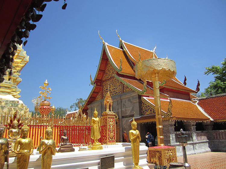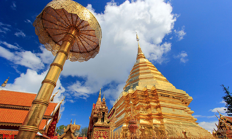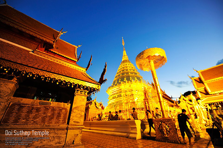 ![]() เป็นวัดสำคัญของเชียงใหม่ นักท่องเที่ยวทุกคนที่เดินทางไปเชียงใหม่มักขึ้นไปนมัสการ จนมีคำขวัญชาวบ้านในสมัยก่อนว่าไปเชียงใหม่ต้อง “ไปกำแพงดิน กินข้าวซอย ขึ้นดอยสุเทพ” อีกทั้งคนเชียงใหม่เองยังเดินทางไปนมัสการอยู่เป็นประจำ ด้วยเชื่อว่าการขึ้นไปนมัสการอยู่เป็นประจำ ด้วยเชื่อว่าการขึ้นไปนมัสการพระธาตุ เสมือนกับการไปแสวงบุญ เนื่องจากสมัยก่อนการเดินทางขึ้นดอยนั้นทำได้ยาก พระธาตุดอยสุเทพยังเป็นพระธาตุประจำปีเกิดของคนเกิดปีมะแมด้วย -มีรถรางไฟฟ้าขึ้นไปนมัสการพระธาตุ มีทางขึ้นสำหรับคนพิการและผู้สูงอายุด้วยค่าบริการ 20 บาท (ขึ้น-ลง) ประวัติ ตั้งขึ้นในสมัยโบราณตั้งแต่ พ.ศ. 1962 ครั้งพญากือนา กษัตริย์องค์ที่ 6 แห่งราชวงศ์มังราย ทรงนิมนต์พระสุมนเถระจากสุโขทัยเข้ามาเผยแผ่พระพุทธศาสนาในเชียงใหม่ ท่านได้นำพระบรมสารีริกธาตุมาด้วยจำนวนสององค์ พญากือนาจึงโปรดฯให้สร้างเจดีย์ขึ้นที่วัดสวนดอกและวัดพระธาตุดอยสุเทพ ในระยะแรกวัดพระธาตุดอยสุเทพยังไม่มีพระภิกษุจำพรรษาต่อมาประมาณปี พ.ศ.2081-2100 พระญาณมงคลโพธิเถระจากลำพูนมาจำพรรษา และสร้างบันไดหินจากฐานขึ้นไปยังองค์พระบรมธาตุ ต่อมาได้ก่ออิฐถือปูนเป็นบันไดนาค ![]() พ.ศ.2348 พระเจ้ากาวิละโปรดฯ ให้บูรณปฏิสังขรณ์พระบรมธาตุและสร้างวิหารสองหลัง และเริ่มงานประเพณีเดินขึ้นดอยเพื่อไปทำบุญในวัดแปดเป็ง (เหนือ) หรือวันขึ้น 15 ค่ำเดือน 6 วันวิสาขบูชา พ.ศ.2478 ครูบาศรีวิชัย นักบุญแห่งล้านนา ได้เชิญชวนให้ประชาชนชาวเหนือร่วมแรงร่วมใจกันสร้างถนนจากเชิงดอยขึ้นไปสู่วัดพระธาตุฯ โดยเริ่มลงมือเมื่อวันที่ 9 พ.ย. 2478 เสร็จสิ้นเมื่อวันที่ 30 มี.ค. 2479 ใช้เวลาเพียง 4 เดือน 22 วันเท่านั้น รวมระยะทาง 14 กม. สิ่งน่าสนใจ อนุสาวรีย์ครูบาศรีวิชัย อยู่ตรงบริเวณทางขึ้นพระธาตุดอยสุเทพ เป็นสถานที่ศักดิ์สิทธิ์ที่ชาวเชียงใหม่ให้ความเคารพอย่างมาก ผู้ที่เดินทางขึ้นดอยสุเทพมักจะแวะนมัสการอนุสาวรีย์ครูบาศรีวิชัย เพื่อความเป็นสิริมงคลก่อนเดินทางขึ้นดอย อนุสาวรีย์นี้สร้างขึ้นหลังจากที่ครูบาศรีวิชัยมรณภาพแล้วทางราชการและชาวเมืองเชียงใหม่ได้บริจาคทรัพย์ช่วยกัน โดยให้กรมศิลปากรเป็นผู้ออกแบบสร้าง เมื่อแล้วเสร็จได้นำมาประดิษฐานไว้ที่เชิงเขาห้วยแก้วอันเป็นจุดเริ่มต้นขึ้นดอยสุเทพดังที่ปรากฏอยู่ในปัจจุบัน บันไดนาค จากลานจอดรถจะขึ้นสู่พระธาตุ มีบันไดนาคเจ็ดเศียร เป็นปูนปั้นประดับกระจก นักท่องเที่ยวนับแต่อดีตจนปัจจุบันนิยมถ่ายภาพกับเศียรพญานาคเป็นที่ระลึก ว่ากันว่าบันไดนาคมีถึง 306 ขั้น แต่เท่า