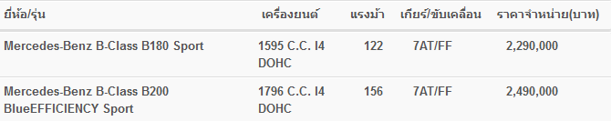 ราคา Mercedes Benz B-Class (เมอร์เซเดส เบนซ์ บี-คลาส) 2014 ทุกรุ่น