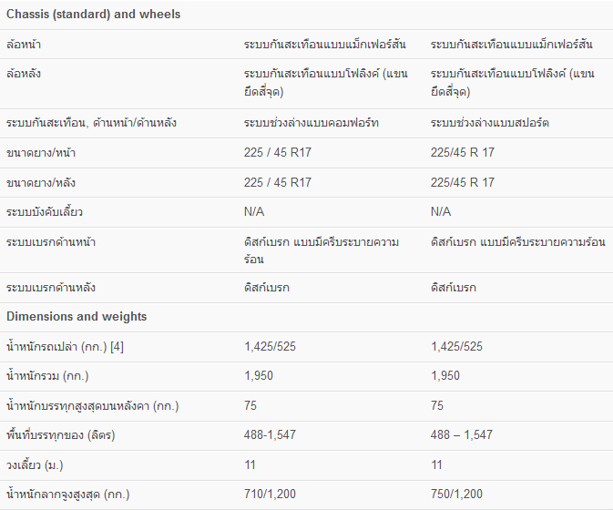 ล้อหลัง: 7.5 J x 17, ขนาดยาง: 225/45 R 17