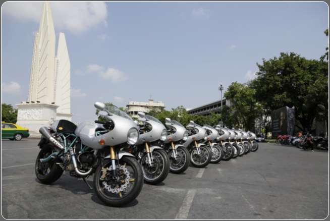Ducati ทองหล่อ จัดงาน The Retro Ride รวมตัวรถหายาก ในตำนานทั้ง GT1000, Sport1000, Paul Smart, MH900e, Mark 3, 450 Desmo, Scrambler ร่วมสร้างตำนานใหม่ โดยกลุ่ม Ducatista ขี่รถ Ducati รุ่นคลาสสิค กว่า 50 คัน ย้อนรอยตำนานเส้นทางเก่าแก่ของประวัติศาสตร์ไทย รอบเกาะรัตนโกสินทร์ เพื่อไปเยี่ยมชมเก็บภาพ รถคลาสสิค ร่วมกับสถานที่ประวัติศาสตร์ ในตัวเมืองกรุงเทพฯ ![]() ภายในงานนี้ ได้บรรดาเหล่าเซเลบริตี้ ดารานักแสดง ที่ชื่นชอบและรักการขี่ Bigbike ควบ Ducati รุ่นเก๋า ออกทริปย้อนรอยประวัติศาสตร์นี้กันอย่างคับบคั่ง ความสนใจเข้าร่วมทริปกันอย่างคึกคัก อาทิเช่น “หนุ่ม” เฉลิมพงษ์ ศรีโรจนันท์ กับรถ Ducati Paul Smart “กัส” พารณ ณ ตะกั่วทุ่ง กับรถ Ducati Paul Smart “กก” ชัยรัตน์ แสงทอง กับรถ Ducati MH900e “ตั้ม” บูรณิจฉ์ คุ้มไพโรจน์ กับรถ Ducati Paul Smart “เจี๊ยบ” ชัยวัฒน์ สิงหะ กับรถ Ducati Paul Smart ภูริ หิรัญพฤกษ์ กับรถ Ducati Paul Smart ![]() นอกจากนั้นยังมีกรรมการผู้จัดการของ Ducati Thailand อย่างคุณ อภิชาติ ลีนุตพงษ์ กับรถ Ducati GT1000 และผู้จัดการทั่วไป Ducati ทองหล่อ คุณชาญชัย มหันตคุณ ร่วมขบวนประวัติศาสตร์ครั้งนี้ด้วย ![]() สำหรับเส้นทางย้อนรอยประวัติศาสตร์ ครั้งนี้ ได้วางเส้นทางการวิ่งตั้งแต่ Ducati ทองหล่อ ออกไปยังใจกลางเมืองย่านเศรษฐกิจอย่างถนนสาทร ก่อนวิ่งข้ามสะพานสาทร ไปยังฝั่งธน ลัดเลาะจนมาข้ามสะพานพุทธ เพื่อไปยังบริเวณรอบสนามหลวง ก่อนวิ่งเข้ามายังถนนราชดำเนินใจกลางประชาธิปไตย ถ่ายรูปทัพ Ducati ก่อนลัดกลับเข้ามายังศาลหลักเมือง ศาลาว่าการ กทม. ![]() |