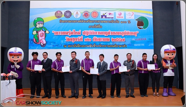 นายสมเกิยรติ พูลขวัญ ผู้จัดการทั่วไปฝ่ายบริหารงานทั่วไป บริษัท ไทยยามาฮ่ามอเตอร์ จำกัด (ที่ 1 จากซ้าย นั่งแถวสอง) ร่วมกับขนส่งจังหวัดสมุทรปราการ และ บริษัท กลางคุ้มครองผู้ประสบภัยจากรถ จำกัด มีวัตถุประสงค์ร่วมกันที่ต้องการให้ความรู้กับเยาวชนไทยเกี่ยวกับกฎหมายจราจร ทักษะการใช้รถจักรยานยนต์ที่ถูกต้อง และปลอดภัย จึงจัดกิจกรรมรณรงค์ส่งเสริมการสวมหมวกนิรภัย 100% จัดอบรมให้กับเยาวชนทั้งภาคทฤษฎี และภาคปฎิบัติ ด้วยการฝึกขับขี่รถจักรยานยนต์ด้วยทักษะที่ถูกต้อง และมุ่งเน้นเรื่องความปลอดภัยเป็นสำคัญ ภายในงานได้รับเกียรติจากนายพรชัย จงศิริรักษ์ ขนส่งจังหวัดสมุทรปราการ (ที่ 2 จากขวา นั่งแถวสอง) เป็นประธานการจัดงาน พร้อมร่วมมอบวุฒิบัตร และหมวกนิรภัยให้กับเยาวชนที่เข้าร่วมกิจกรรมฯ ณ บริษัท ไทยยามาฮ่ามอเตอร์ จำกัด ถนนบางนา-ตราด กม.21 เมื่อเร็วๆ นี้ ![]() ![]() |