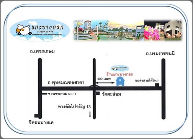 หลายคนที่ชอบทานอาหารนอกบ้าน ถ้าชื่นชอบร้านที่ขายบรรยากาศและตกแต่งสวย ขอแนะนำ...แกะบางกอก ย่านพุทธมลฑลสาย 1 แค่ฟังชื่อรู้ทันทีว่ารูปแบบร้านน่าจะมาในสไตล์ Romantic Farm and Restaurang เพราะ ตกแต่งในแบบฟาร์มแกะผสมผสานกับซานโตรินี พาร์คได้อย่างลงตัว ![]() ดังนั้นการตกแต่งร้านจึงเน้นขายบรรยากาศเพื่อให้ออกมาเหมือนฟาร์มมากที่สุด โดยทางเจ้าของร้าน ได้เผยถึงแนวความคิดว่าที่ทำร้านแบบนี้ เพราะชื่นชอบเมื่อครั้งไปเที่ยวฟาร์มแกะแถวสวนผึ้ง ที่ราชบุรี ซึ่งเป็นสถานที่น่าเที่ยว เลยมีไอเดียนำมาทำเป็นร้านอาหาร จึงเป็นที่มาของชื่อว่า แกะบางกอก เพราะยกฟาร์มแกะมาตั้งอยู่ในเมืองกรุง ![]() เมื่อเข้ามาสัมผัสจะเห็นว่าร้านแกะบางกอกเน้นโทนสีขาว เพราะได้นำรูปแบบมาจากซานโตรีนี พาร์คที่ชะอำ โดยมีพื้นที่ขนาดใหญ่ถึง 8 ไร่แบ่งเป็นพื้นที่ร้าน 4 ไร่และบึงอีก 4 ไร่ ด้านหน้าร้านโดดเด่นด้วยโดมคล้ายประภาคารสีขาวที่มีกังหัน พร้อมกับล้อมรอบด้วยรั่วกั้นที่คล้ายกับคอกแกะ ที่สำคัญได้กั้นคอกไว้สำหรับเลี้ยงแกะ เพื่อให้สามารถป้อนนมและถ่ายรูปได้ตามใจชอบ ![]() และด้วยสถานที่กว้างขวางมากจึงเน้นในแบบเอาท์ดอร์เป็นส่วนใหญ่ ทำให้สามารถจัดโต๊ะนั่งได้มากถึง 100 ที่ลูกค้าสามารถเลือกดูรอบ ๆ ได้ว่าจะนั่งตรงไหนเพราะแบ่งเป็นมุมต่าง ๆ เน้นโต๊ะนั่งสีเข้มแบบที่นั่งยาวตัดด้วยสีขาวโดยรอบ คู่กับโต๊ะไม้แบบสามฉา พร้อมที่นั่งริมบ่อน้ำพุ และตกแต่งด้วยเสาป้ายบอกทางติดโคมไฟกับกระเช้าดอกไม้ แถมบรรยากาศสลัว ๆ และเย็นสบาย ![]() และในส่วนอินดอร์เป็นอาคารสีขาวหลังคามุงด้วยหญ้าคาได้ทำเป็นห้องจัดเลี้ยงที่จุได้ถึง 200 คนพร้อมคาราโอเกะ เพื่อฉลองวันเกิดหรือรับปริญญา แถมลดมิกเซอร์ 50% และที่บริเวณด้านข้างยังได้จัดเป็นโต๊ะนั่งริมน้ำราว 10 โต๊ะ เพื่อให้สัมผัสกับธรรมชาติของบึงขนาดใหญ่ หรือแม้แต่ห้องน้ำยังตกแต่งด้วยกองฟางให้เข้ากับรูปแบบของร้านอย่างลงตัว ![]() สำหรับความบันเทิงที่นี่เน้นให้เข้ากับบรรยากาศในยามค่ำคืน โดยช่วงประมาณหนึ่งทุ่มครึ่งจะเพลิดเพลินกับดนตรีสดในสไตล์โฟล์คซองที่มีฝีมือเยี่ยม เพราะสามารถขับกล่อมลูกค้าที่มานั่งทานอาหารให้เคลิบเคลิ้มไปกับเสียงเพลงที่ไพเราะ และในวันศุกร์-เสาร์-อาทิตย์จะมีดนตรี 2 วง หรือบางช่วงก็จะเปิดเพลงให้ฟัง ![]() มาถึงอาหารขึ้นชื่อที่ต้องชวนให้ชิม เริ่มด้วยของทานเล่น โรลบางกอก ที่คล้ายกับเบคอนชิ้นใหญ่ โดยให้ทานกับมันบดและผักหอม ซึ่งเป็นสูตรของทางร้าน แต่ถ้าเป็นอาหารไทยที่รสจัดจ้านต้องยกให้ปลาหมึกนึ่งมะนาว อร่อยถูกปากทาน