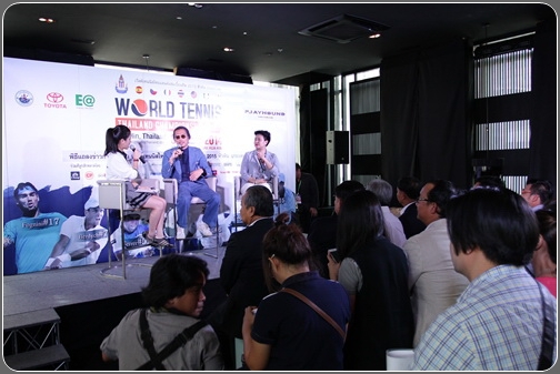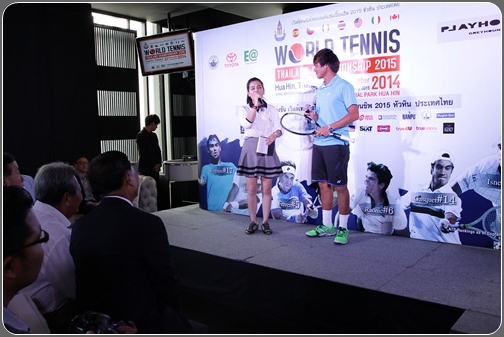 สนับสนุนให้คนรุ่นใหม่ใส่ใจกีฬา ผ่านงานออกแบบแฟชั่นสำหรับการกีฬาเป็นครั้งแรก ประเดิมออกแบบสำหรับการแข่งขันเทนนิสระดับโลก World Tennis Thailand Championship 2015 ลอนเทนนิสสมาคมแห่งประเทศไทยฯ ร่วมกับบริษัท บีอีซี-เทโรเอ็นเตอร์เทนเม้นท์ จำกัด (มหาชน) บริษัท ดิ เอเจนซี่ จำกัด และแฟชั่นแบรนด์เพลย์ฮาวด์(Playhoundby Greyhound) จัดงานแถลงข่าวด้วยคอนเซ็ปต์งาน "เดอะฮาร์ด-คอร์ตรันเวย์"(The Hard-Court Runway)โดยมีฯพณฯ สุวัจน์ ลิปตพัลลภ อดีตรองนายกรัฐมนตรี นายกลอนเทนนิสสมาคมแห่งประเทศไทย ในพระบรมราชูปถัมภ์ ได้ให้เกียรติเป็นประธานแถลงข่าวการจัดการแข่งขันเทนนิสรายการพิเศษ "เวิลด์ เทนนิส ไทยแลนด์แชมเปี้ยนชิพ 2015" ชิงถ้วยพระราชทาน พระบาทสมเด็จพระเจ้าอยู่หัวฯ ครั้งที่ 2 ซึ่งจะจัดขึ้นที่อ.หัวหิน จังหวัดประจวบคีรีขันธ์ เมืองตากอากาศระดับโลก ณ สนามเซ็นเท็นเนียลปาร์ค หัวหินจ.ประจวบคีรีขันธ์ ระหว่างวันที่ 31 ธันวาคม 2557 – 2 มกราคม 2558 เพื่อมอบความสุขผ่านการกีฬาระหว่างช่วงวันหยุด เทศกาลวันขึ้นปีใหม่ การแข่งขันจะมีขึ้นระหว่างวันที่ 31 ธันวาคม 2557 ถึงวันที่ 2 มกราคม 2558 โดยมีนักกีฬาเทนนิสอาชีพชาย 20 อันดับแรกของโลก (ATP Ranking) 6 คน เข้าร่วมการแข่งขัน อันได้แก่ เดวิด เฟร์เรร์ (David Ferrer) มือวางอันดับ 5 จากประเทศสเปนมิลอส ราโอนิก(Milos Raonic) มือวางอันดับ6 จากประเทศแคนนาดา โทมัส เบอร์ดิช (Tomas Berdych)มือวางอันดับ 7 จากประเทศสาธารณเชก ริชาร์ดกาสเกต์(Richard Gasquet) มือวางอันดับ 14 จากประเทศฝรั่งเศส, จอห์น อิสเนอร์(John Isner) มือวางอันดับ 15 จากประเทศสหรัฐอเมริกา และ ฟาบิโอ ฟอกนินี (Fabio Fognini) มือวางอันดับ 17 จากประเทศอิตาลีลักษณะการแข่งขัน จะเป็นการแข่งขันรวม 3 วัน วันแรกเป็นรอบก่อนรองชนะเลิศ วันที่สองเป็นรอบรองชนะเลิศ และวันที่สามเป็นรอบชิงชนะเลิศ การแข่งขันครั้งนี้ ผู้ชนะเลิศจะได้ครองถ้วยพระราชทานพระบาทสมเด็จพระเจ้าอยู่หัวฯ "คิงส์คัพ" และ ผู้ชนะในแต่ละแมทช์จะได้รับเงินรางวัล ซึ่งมีชิงเงินรางวัลรวมทั้งสิ้น 1 แสนดอลลาร์สหรัฐ (ประมาณ 3.2 ล้านบาท) ทั้งนี้ จะมีการถ่ายทอดสดทางสถานีโทรทัศน์ให้ประชาชนได้รับชมทุกแมตช์ตลอดการแข่งขันผ่านทางทรูวิชั่น3 ช่องทาง คมชัดแบบเอชดีทาง True Tennis HD (ทรูวิช่ันนส์ช่อง 670) สถานีทีวีดิจิทัลทรูโฟร์ยู และทุกที่ทุกเวลาทางแอพพลิเคชั่น ทรูวิชั่นส์เอนิแวร์ รวมถึงถ่ายทอดการแข่งขันผ่านทางสถานีโทรทัศน์ต่างประเทศ เช่น ESPN, Fox Sport, และ Tennis Channel เพื่อเป็นการส่งความสุขปีใหม่ Happy New Year 2015 ![]() นักเทนนิสชายทั้ง 6 คน จะเดินทางมาถึงประเทศไทย ในวันที่ 29 ธันวาคม จากนั้นวันที่ 30 ธันวาคม จะร่วมงานแถลงข่าวที่สวนน้ำ วานา นาวา หัวหิน และงานเลี้ยงต้อนรับ ท