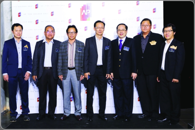 คุณอนุพงษ์ อัศวโภคิน (ที่ 5 จากซ้าย) ประธานเจ้าหน้าที่บริหาร บริษัท เอพี (ไทยแลนด์) จำกัด (มหาชน) พร้อมทีมผู้บริหาร นำโดย คุณพิเชษฐ วิภวศุภกร (ที่ 1 จากซ้าย) กรรมการผู้อำนวยการ บมจ. เอพี (ไทยแลนด์) และผู้รับเหมาพันธมิตรกว่า 30 บริษัท ร่วมฉลองความสำเร็จและความภาคภูมิใจร่วมกันในการพัฒนาคอนโดมิเนียมในเครือเอพี ครอบคลุมกว่า 60 โครงการทั่วกรุงเทพฯ รวมทั้งการเตรียมความพร้อมสู่การเติบโตอย่างยั่งยืนในการพัฒนาคอนโดมิเนียมในปี 2558 ณ ร้านชินโทริ เซ็นทรัลเวิลด์ เมื่อเร็วๆ นี้บุคคลในภาพ (จากซ้าย – ขวา)
