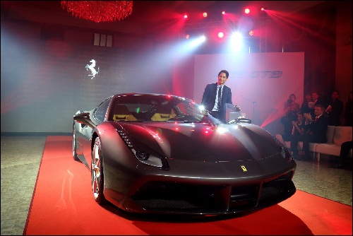 บางรัก กรุงเทพฯ-  21 ส.ค.58  คุณนันทมาลี ภิรมย์ภักดี กรรมการผู้จัดการ  คาวาลลิโน มอเตอร์ ผู้นำเข้าอย่างเป็นทางการของเฟอร์รารี่ในประเทศไทย เปิดตัวเฟอร์รารี่ 488 GTB (Ferrari 488 GTB) ซึ่งเป็นการเผยตัวตนเป็นครั้งแรกต่อสื่อมวลชนและลูกค้าของเฟอร์รารี่ในประเทศไทย หลังจากที่ได้เปิดตัวในงานมอเตอร์โชว์นานาชาติ ณ กรุงเจนีวาในเดือนมีนาคมที่ผ่านมา โดยเฟอร์รารี่ 488 GTB นั้นได้กำหนดมาตรฐานใหม่สำหรับรถสปอร์ต หลังจาก 40 ปีนับจากการเปิดตัวรถรุ่นอันเป็นเอกลักษณ์ของเฟอร์รารี่ นั่นก็คือ เฟอร์รารี่ 308 ซึ่งเป็นครั้งแรกของเครื่องยนต์ขนาดแปดสูบเบอลิเน็ตต้า (V8 Berlinetta) วางเครื่องกลางด้านหลัง และวันนี้เฟอร์รารี่ 488 GTB ได้สร้างบทใหม่ในประวัติศาสตร์ของรถยนต์ด้วยชิ้นงานแห่งสถาปัตยกรรมที่โดดเด่นอีกครั้งหนึ่ง