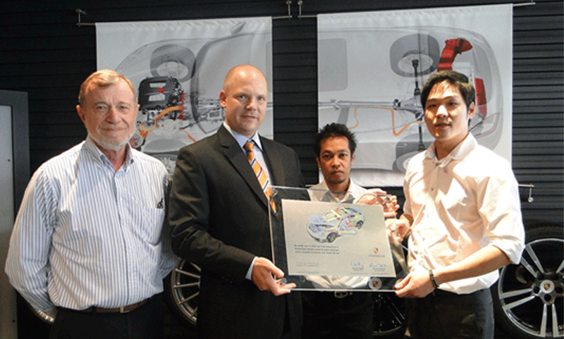 ตอกย้ำความเหนือกว่าของผู้นำเข้าอย่างเป็นทางการ การันตีด้วยรางวัลคุณภาพจากโรงงานปอร์เช่ รางวัลการันตีคุณภาพ •The Most Emotional Porsche Centre Award 2013 รางวัลการันตีคุณภาพแผนกบริการและแผนกสีและตัวถัง •Porsche Service Excellence Award 2013 •Porsche Service Dealer Review Audit 2013 •Porsche Body & Paint Dealer Review Audit 2013 รางวัลการันตีคุณภาพทีมวิศวกรจากโรงงานปอร์เช่ เยอรมนี •ทีมวิศวกรที่ผ่านการทดสอบระดับเหรียญทอง Zertifizierter Porsche Techniker3 Gold Practical Test •ทีมวิศวกรที่ผ่านการทดสอบ 100% จากระบบ PAG WBT (Web Based Training) รางวัลการันตีคุณภาพทีมบริการและทีมขายจากโรงงานปอร์เช่ เยอรมนี -ทีมบริการและทีมขายที่ผ่านการทดสอบ Porsche Global Certification System (PGCS) 2013 -ทีมขายที่พร้อมมอบคำแนะนำอย่างมืออาชีพ Porsche Certified Sales Consultant (Porsche Ambassador) -ทีมบริการที่พร้อมมอบคำแนะนำอย่างมืออาชีพ Porsche Certified Service Advisor (Porsche Ambassador) สอบถามรายละเอียดเพิ่มเติมได้ที่แผนกขาย โทร. 02-522-6655 ต่อ 101-103 หรือเยี่ยมชมเว็บไซต์ได้ที่ www.porsche.co.th |