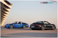 มาพร้อมกับนวัตกรรมหลังคาที่โดดเด่น: เปิดตัวความคลาสสิคที่ทันสมัยสู่สายตาสาธารณชน สตุ้ดการ์ด. 911 ทาร์ก้า (911 Targa)(1) เปิดตัวเข้าสู่สายตาสาธารณชนอย่างเป็นทางการแล้วที่งานมหกรรมยานยนต์ North American International Auto Show (NAIAS) ที่เมืองดีทรอยต์ โดยในงานนี้ปอร์เช่ได้นำเสนอ 911 เจเนอเรชั่นใหม่ล่าสุดรุ่นนี้ มาให้ชื่นชมกันอย่างใกล้ชิด แนวคิดการออกแบบเน้นการผสมผสานระหว่างความคลาสสิคเข้าไว้กับเทคโนโลยีชั้นนำ ได้อย่างลงตัว รูปลักษณ์ได้รับแรงบันดาลใจมาจากทาร์ก้า (Targa) รุ่นดั้งเดิม โดยทำการเสริมบาร์ให้มีความกว้างเข้าสู่ B-pillars หลังคาที่อยู่เหนือเบาะหน้าสามารถเคลื่อนย้าย ออกได้ และเก็บเข้าสู่พื้นที่ทางด้านกระจกหลัง (โดยไม่มีส่วนของ C-pillar เลย) ส่วนของหลังคาสำหรับรุ่นทาร์ก้า (Targa) ใหม่ สามารถเปิดและปิดได้อย่างง่ายดายเพียงแค่กด ปุ่ม เมื่อปุ่มถูกเปิดใช้งาน หลังคาจะถูกเก็บอัตโนมัติโดยทันที ตรงที่นั่งด้านหลัง ระบบ PTM all-wheel drive ได้รับการติดตั้งมาเป็นระบบมาตรฐานเพื่อให้แน่ใจได้ว่า 911 จะมีความคล่องตัวในการขับขี่ในทุกๆ สภาวะของพื้นผิวถนนและในทุกๆ สภาวะของอากาศอีกด้วย ด้วยจุดเด่นและคุณสมบัติต่างๆ ที่ครบครันใน 911 ทาร์ก้า (911 Targa) นี้เองที่ทำให้รถรุ่นใหม่คันนี้เต็มไปด้วยคุณภาพ เทคโนโลยีชั้นนำ และเป็นนวัตกรรมที่ทำให้ย้อนนึกไปถึงรถคลาสสิค จากปี 1965 รถรุ่นนี้ยังได้ใช้คุณสมบัติของเทคโนโลยีและตัวรถจากรุ่น 911 คาร์เรร่า 4 คาบริโอเลต (911 Carrera 4 Cabriolet) ส่วนท้ายมีที่กว้างแสดงให้เห็นถึง ความเป็นรุ่นขับเคลื่อนสี่ล้อที่มีความโดดเด่น Targa bar และกระจกหลังแบบ Dome-shaped ทำให้ 911 ใหม่ล่าสุดคันนี้ มีรูปลักษณ์ที่สปอร์ตและโดดเด่น ![]() 2 รุ่นที่แตกต่างแต่มาพร้อมกับระบบขับเคลื่อนสี่ล้อ ทาร์ก้า (Targa) เจเนอเรชั่นใหม่ล่าสุดคันนี้ มีให้เลือก 2 เวอร์ชั่น มาพร้อมกับระบบขับเคลื่อนสี่ล้อ นั่นคือ 911 ทาร์ก้า 4 (911 Targa 4) ที่มาพร้อมกับขนาดเครื่องยนต์ ขนาด 3.4 ลิตร 350 แรงม้า (257 กิโลวัตต์) และเครื่องยนต์แบบ Flat engine หากติดตั้งระบบเกียร์อัตโนมัติ Porsche Doppelkupplung (PDK) และแพ็คเกจ Sport Chrono มากับรถแล้ว จะทำให้รถมีอัตราเร่งจาก 0-100 กิโลเมตรต่อชั่วโมง เพียงแค่ 4.8 วินาที เท่านั้น ความเร็วสูงสุดอยู่ที่ 282 กิโลเมตรต่อชั่วโมง อัตราการบริโภคน้ำมันเชื้อเพลิงตามรูปแบบ NEDC อยู่ระหว่าง 9.5 และ 8.7 ลิตรต่อ 100 กิโลเมตร ซึ่งขึ้นอยู่กับระบบส่งกำลังที่ติดตั้งด้วยเช่นกัน อัตราการปล่อยก๊าซคาร์บอนไดออกไซด์ อยู่ระหว่าง 223 และ 204 กรัมต่อกิโลเมตร ส่วนรุ่นท็อปคือรุ่น 911 ทาร์ก้า 4 เอส (911 Targa 4S) มีพละกำลังเครื่องยนต์สูงถึง 400 แรงม้า (294 กิโลวัตต์) จากเครื่องยนต์ ขนาด 3.8 ลิตร ความเร็วสูง