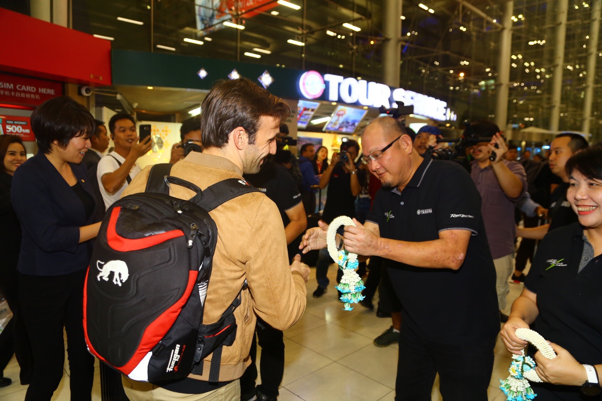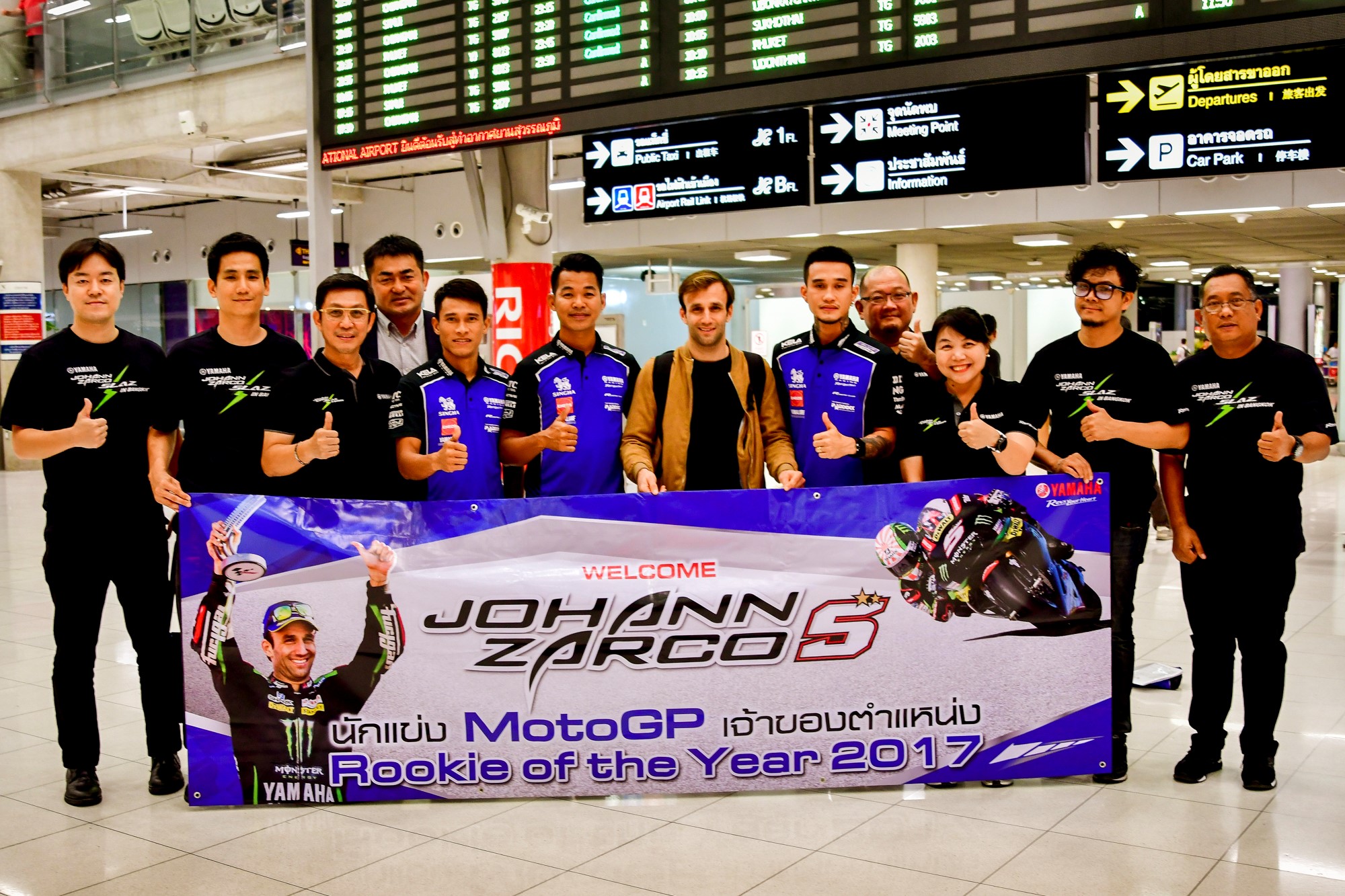 มร.โยชิทากะ อัทซึมิ (คนที่ 3 จากขวา) รองผู้จัดการใหญ่ด้านวางแผนการค้า พร้อมด้วยผู้บริหารระดับสูง บริษัท ไทยยามาฮ่ามอเตอร์ จำกัด ให้การต้อนรับ มร.โยฮัน ซาโก้ (คนกลาง) นักแข่งรถจักรยานยนต์ระดับโลกในศึกโมโตจีพี สังกัดทีม Yamaha TECH3 เจ้าของรถแข่ง YZR-M1 หมายเลข 5 ที่เดินทางมาร่วมงานเปิดตัวรถจักรยานยนต์รุ่นใหม่ในงาน The 34th Thailand International Motor Expo 2017 ที่จัดขึ้นภายใต้แนวคิด “Yamaha Riders’ Community” เพื่อเอาใจสาวกไบค์เกอร์ พร้อมข้อเสนอสุดพิเศษภายในงาน ซึ่งจัดขึ้นระหว่างวันที่ 30 พฤศจิกายน - 11 ธันวาคม 2560 นี้ โดยการต้อนรับนักแข่งระดับโลกครั้งนี้มีขึ้น ณ ท่าอากาศยานสุวรรณภูมิ เมื่อเร็วๆ นี้