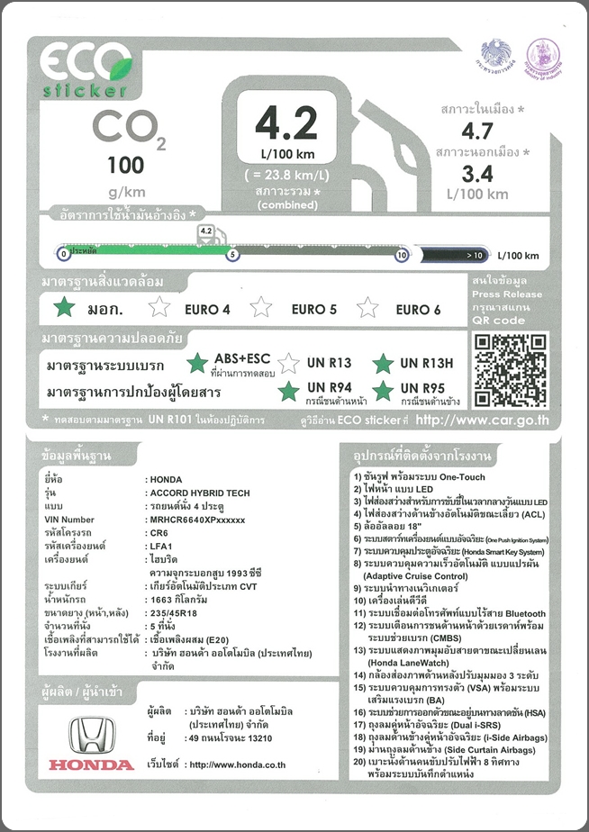 ฮอนด้านำ แอคคอร์ด ไฮบริด ร่วมจัดแสดง งานเปิดตัวระบบป้ายข้อมูลรถยนต์ Eco Sticker