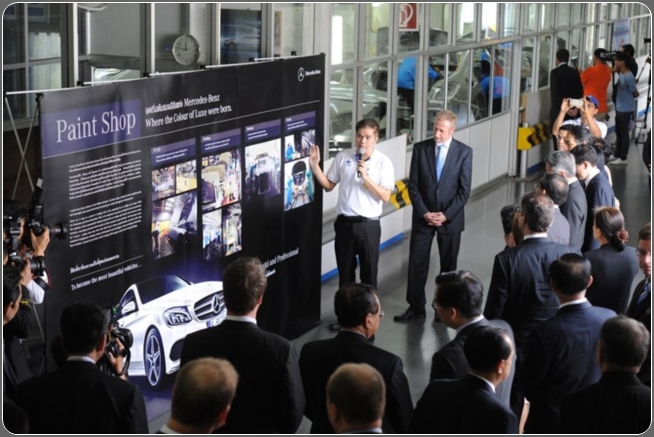 “ในโอกาสครบรอบ 110 ปี ของเมอร์เซเดส-เบนซ์ ในประเทศไทย บริษัทฯ จึงได้ดำเนินการเปิดสายการผลิตรถยนต์ เมอร์เซเดส-เบนซ์ รุ่น C 300 BlueTEC HYBRID เพื่อตอกย้ำให้เห็นถึงการไม่หยุดนิ่งของเมอร์เซเดส-เบนซ์ในความมุ่งมั่นนำเสนอนวัตกรรมยานยนต์ให้กับผู้บริโภคทั้งในด้านผลิตภัณฑ์และกระบวนการผลิต อีกทั้งยังเป็นการเติมเต็มพอร์ทโฟลิโอของรถยนต์เครื่องยนต์ดีเซลไฮบริดในตระกูล Contemporary Luxury ได้อย่างครบครันทั้ง C-E-S หลังจากบริษัทฯ ได้ทุ่มงบประมาณกว่า 650 ล้านบาท เพื่อขยายกำลังการผลิตรองรับความต้องการในตลาดที่เพิ่มสูงขึ้น โดยให้ความสำคัญกับการผลิตรถยนต์ดีเซลไฮบริด เพื่อช่วยลดการใช้พลังงาน และลดปริมาณคาร์บอนไดอ๊อกไซค์ได้อย่างมีประสิทธิภาพ ทั้งนี้ การขยายกำลังการผลิตจะสำเร็จไม่ได้หากขาดความร่วมมือที่ดีจาก “บริษัท ธนบุรีประกอบรถยนต์ จำกัด” กับการเป็นพันธมิตรทางธุรกิจกับ เมอร์เซเดส-เบนซ์ ประเทศไทย มาอย่างยาวนาน ด้วยบทบาทของผู้ประกอบรถยนต์เมอร์เซเดส-เบนซ์ ภายใต้มาตรฐานคุณภาพการประกอบรถยนต์จากเดมเลอร์ เอจี ประเทศเยอรมนี”