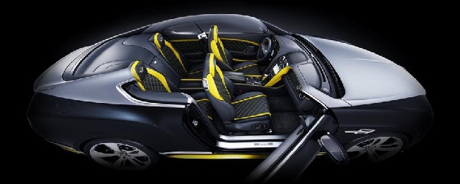 สีที่เป็นเอกลักษณ์นี้ยังได้ถูกนำมาใช้กับภายในห้องโดยสารด้วยเช่นกัน โดยเบาะนั่งเป็นสี Brietling Yellow เพิ่มความโดดเด่นไม่เหมือนใคร ด้วยการทำให้เป็นเอกลักษณ์ไม่เหมือนใคร รถแต่ละคันจะมีความพิเศษตามเครื่องบิน Breitling Jets ทั้ง 7 ลำที่แตกต่างกัน คอนโซลด้านหน้าทำจากคาร์บอนไฟเบอร์ แสดงผลผ่านหน้าปัด 7 วงที่ได้รับการออกแบบตามแผงหน้าปัดในเครื่องบินโดยมีพื้นหลังสี Breitling Yellow เพื่อเพิ่มความโดดเด่น ชุดแต่ง Mulliner ได้รับการปรับแต่งให้เหมาะสมกับสีเหลือง Breitling ที่เป็นเอกลักษณ์ซึ่งได้รับการออกแบบโลโก้และกราฟฟิคต่างๆ ลงบนที่พักศรีษะ เพื่อเป็นการเน้นให้เห็นถึงลำดับของรถที่ผลิตในแต่ละคัน ตามแบบฉบับของเครื่องบินเจ็ท