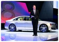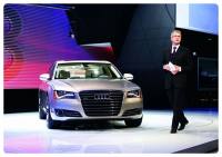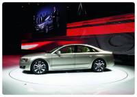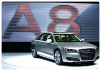 All-New Audi A8 ใหม่ เปิดตัวที่ Detroit Auto Show เกิดมาเพื่อพิฆาต S-Class และ Series 7 แม้ว่า Audi จะเคยเผยโฉม All-New A8 ไปแล้วเมื่อเดือนพฤศจิกายนปลายปีที่ผ่านมา แต่ก็ถือว่าเป็นครั้งแรกในการเปิดตัวซีดานหรูในงานมอเตอร์โชว์ โดยเฉพาะอย่างยิ่งงานมอเตอร์โชว์ที่ถือว่าเป็นงานใหญ่ของปีงานหนึ่งอย่าง Detroit Auto Show ทาง Audi ได้วางตำแหน่งทางการตลาดให้กับ A8 เป็นรถซีดานหรูระดับพรีเมี่ยม โดยมีคู่แข่งเป็น BMW Series 7 และ Mercedes-Benz S-Class ในขณะที่ Lexus LS และ Jaguar XJ ยังถือว่าเป็นคู่แข่งในระดับที่รองลงไป