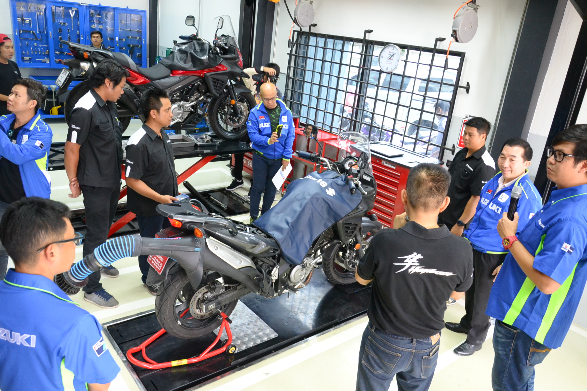 พร้อม S ที่ 3 Services - การบริการหลังการขาย ที่ทางศูนย์มีเครื่องมือที่ได้มาตรฐานและทันสมัย ที่มีอุปกรณ์เพื่อดูแลรถจักรยานยนต์ Big Bike ของท่านให้ได้รับการบำรุงรักษาได้เป็นอย่างดี อีกทั้งยังมีระบบจัดการที่คำนึงถึงสิ่งแวดล้อม โดยมีระบบบำบัดไอเสียที่เป็นมิตรต่อสิ่งแวดล้อมก่อนปล่อยออกสู่สาธารณะ พร้อมทั้งยังตกแต่ง Showroom ด้วยสีดำ, สีซิลเวอร์ และสีเบจ เข้ามาผสมผสานอย่างกลมกลืนเพื่อสร้างสรรค์โชว์รูมให้มีรูปลักษณ์ที่ดูหรูหรามีระดับ ซึ่งคณะสื่อมวลชนทุกท่านสามารถสัมผัสได้ถึงความรู้สึกที่น่าหลงใหล น่าตื่นเต้นของรถจักรยานยนต์ซูซูกิในขณะเข้าเยี่ยมชมในโชว์รูมซูซูกิ พร้อมมุมของ Accessories เพื่อตกแต่ง เพิ่มเติมระดับคุณภาพต่างๆ มากมาย  อีกทั้งยังมีมุม Apparels หรือของที่ระลึกให้เลือกชมเลือกซื้ออย่างหลากหลายสไตล์ บ่งบอกความเป็นตัวตนอย่างแท้จริง อีกทั้งยังมีห้องรับรอง พร้อมสิ่งอำนวยความสะดวก เพื่อรองรับลูกค้าให้ได้รับความสะดวกสบายทุกครั้งที่มารับบริการที่โชว์รูม Suzuki Big Bike Pattaya