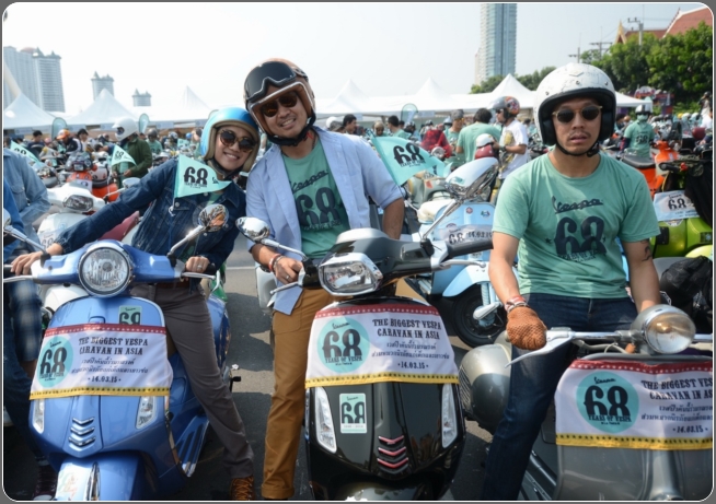 (กรุงเทพฯ- 14 มีนาคม2558) บริษัท เวสปิอาริโอ จำกัด (ประเทศไทย) ผู้นำเข้าและจัดจำหน่ายรถพรีเมี่ยมสกู๊ตเตอร์สัญชาติอิตาลี “เวสป้า”และ “พิอาจิโอ”แต่เพียงผู้เดียวในประเทศไทยจัดงานฉลองครบรอบ 68 ปีเวสป้า“68 Years of Vespa La Festa”เป็นจำนวนมากกว่า 5,000 คัน ซึ่งเกินความคาดหมายภายใต้ธีมอิตาเลี่ยนคาร์นิวัล ระดมพลผู้ชื่นชอบสกู๊ตเตอร์พรีเมี่ยมสัญชาติอิตาลีจากทั้งในประเทศและต่างประเทศ ร่วมขบวนคาราวานเวสป้าครั้งประวัติศาสตร์ที่ยิ่งใหญ่ที่สุดในเอเชีย จากเอเชียทีคเดินทางสู่สนามม้านางเลิ้ง พร้อมร่วมแบ่งปันน้ำใจจัดหาหมวกนิรภัยส่งมอบให้แก่เด็กและเยาวชน