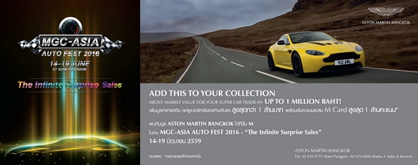 แอสตัน มาร์ติน จัดแคมเปญ "เทรดอิน รถซุปเปอร์คาร์" ในงาน MGC-ASIA Auto Fest 2016 วันที่ 14-19 มิ.ย.59