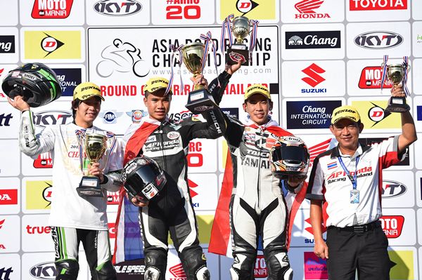 นครินทร์ อธิรัทภูวภัทร นักบิดดาวรุ่งชาวไทยจาก เอ.พี.ฮอนด้า เรซซิ่ง ไทยแลนด์ผงาดคว้าแชมป์ เอเชีย โปรดักชั่น 250 ซี.ซี. หลังบิดเอาชนะคู่แข่งอย่างสุดมันส์ โดยมี ทาเคฮิโร ยามาโมโตะ นักบิดญี่ปุ่น และ อนุภาพ ซามูล นักบิดไทยจาก ยามาฮ่า ไทยแลนด์ เรซซิ่ง ทีม เป็นอันดับ 2 และ 3 จากเกมเมื่อช่วงบ่ายวันเสาร์ที่ผ่านมา ที่สนามช้าง อินเตอร์เนชั่นแนล เซอร์กิต จ.บุรีรัมย์