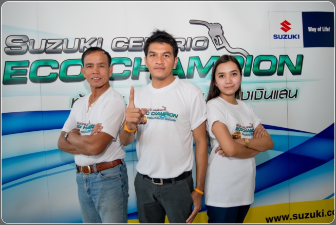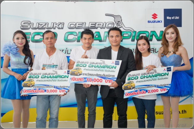 ชาวภาคอีสานร่วมสร้างสถิติใหม่เซอร์ไพร์สได้อีก บริษัท ซูซูกิ มอเตอร์ (ประเทศไทย) จำกัด ผู้นำตลาดรถยนต์อีโคคาร์ นำโดย มร. ทาคายูคิซูกิยามากรรมการผู้จัดการใหญ่และ คุณวัลลภ ตรีฤกษ์งาม ผู้อำนวยการฝ่ายขายและการตลาดร่วมกับดร.พงษ์ศักดิ์ สกุลคูประธานกลุ่มบริษัท เจียง อินเตอร์เนชั่นแนลจำกัดยังคงเดินหน้าจัดการแข่งขัน “SUZUKI CELERIO Eco Champion”เพื่อเฟ้นหาสุดยอดผู้ใช้งานจริงจากกลุ่มลูกค้าซูซูกิ เซเลริโอ้ทั่วประเทศ ที่สามารถสร้างสถิติการขับประหยัดน้ำมันด้วยค่าเฉลี่ยอัตราการใช้เชื้อเพลิงที่ต่ำที่สุด โดยเน้นการขับจริง บนสภาพการจราจรปกติด้วยระยะทางการแข่งขันประมาณ 50 กิโลเมตรและกำหนดเวลาการเดินทาง 1 ชั่วโมง 20 นาที โดยใช้รถยนต์ ซูซูกิ เซเลริโอ้ เครื่องยนต์มาตรฐานจากโรงงาน ปราศจากการปรับแต่งใดๆ ทั้งสิ้น ซึ่งการแข่งขันประจำภาคอีสานครั้งนี้จัดขึ้นที่จังหวัดอุดรธานี โดยมีผู้เข้าแข่งขันจากจังหวัดใกล้เคียงเข้าร่วมการแข่งขัน นอกจากบรรดาผู้เข้าแข่งขันจะนำทักษะการขับขี่แบบประหยัดน้ำมันที่ถูกต้องมาใช้อย่างถูกวิธีแล้ว ยังดึงเทคนิคต่างๆ ที่ช่วยเสริมความประหยัดมาใช้ในการแข่งขันอีกด้วย ซึ่งผู้เข้าแข่งขันแต่ละท่านก็งัดกลยุทธ์เคล็ดลับมาใช้กันอย่างสุดฝีมือทำให้เมื่อคำนวณอัตราสิ้นเปลืองเฉลี่ยจากผู้เข้าแข่งขันทั้งหมดแล้วสามารถสร้างสถิติได้สูงถึง 79.93 กิโลเมตร/ลิตร ทำลายสถิติในภูมิภาคแรกไปอย่างขาดลอย ![]() สำหรับผู้ที่สามารถสร้างสถิติอัตราสิ้นเปลืองเชื้อเพลิงได้ดีที่สุด คว้าตำแหน่งผู้ชนะเลิศรอบภูมิภาคประจำภาคอีสาน ได้แก่ คุณพิชัยยุทธ นาพิสารส่วนอันดับที่ 2 ได้แก่ คุณวันชัย กันหาทองอันดับที่ 3 ได้แก่ คุณกัลยา ทองอนันติวงศ์ตามลำดับและในครั้งนี้ยังได้รับเกียรติจากมร.ทาคายูคิซูกิยามา กรรมการผู้จัดการใหญ่บริษัท ซูซูกิ มอเตอร์ (ประเทศไทย) จำกัด ร่วมพิสูจน์สมรรถนะด้วยตนเอง และสามารถทำสถิติได้ถึงอันดับ 2 ของผู้เข้าแข่งขันทั้งหมด แต่ทำการสละสิทธิ์การรับรางวัลให้แก่ผู้เข้าแข่งขันในลำดับถัดไป ![]() คุณพิชัยยุทธ นาพิสาร ได้เปิดเผยกลยุทธ์ในการพิชิตตำแหน่งผู้ชนะเลิศในการแข่งขัน SUZUKI CELERIO Eco Champion ว่า “ตัวรถที่ใช้แข่งขันนั้นไม่ได้ทำการดัดแปลงอะไรเลย เซททุกอย่างตามกฎของการแข่งขัน ที่เหลือคือใช้ทักษะแต่ทำการปิดแอร์ เปิดกระจกขับด้วยเพื่อเสริมความประหยัดซึ่งเป็นเทคนิคปกติ พยายามขับให้ความเร็วคงที่ 60 กม./ชม. เมื่อเจอแยกไฟแดงก็ชะลอคำนวณจังหวะให้ผ่านพ้นไปได้พอดี จุดนี้นับว่าเป็นความท้าทายและเพิ่มความสนุกให้กับการประลองใน