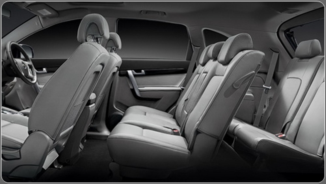 อีกจุดเด่นที่สำคัญของ Captiva ก็คือ เป็นรถ SUV 7 ที่นั่ง ที่สามารถเข้าออกห้องโดยสารได้สะดวก ปรับพับเบาะที่นั่งในสองแถวหลังให้เรียบไปกับพื้นได้อย่างอิสระ เพื่อใส่สัมภาระขนาดใหญ่ได้ สะดวกสบายสำหรับทุกการเดินทาง ห้องโดยสารกว้างแม้กระทั่งที่นั่งแถวหลังสุด เบาะสูงพอดี มี Leg room ที่พอเพียง ไม่เมื่อยล้าเมื่อนั่งนานๆ นอกจากนี้ยังเพลิดเพลินไปกับระบบเสียง 3 มิติภายในรถ สร้างสนามเสียงครอบคลุมทุกที่นั่ง