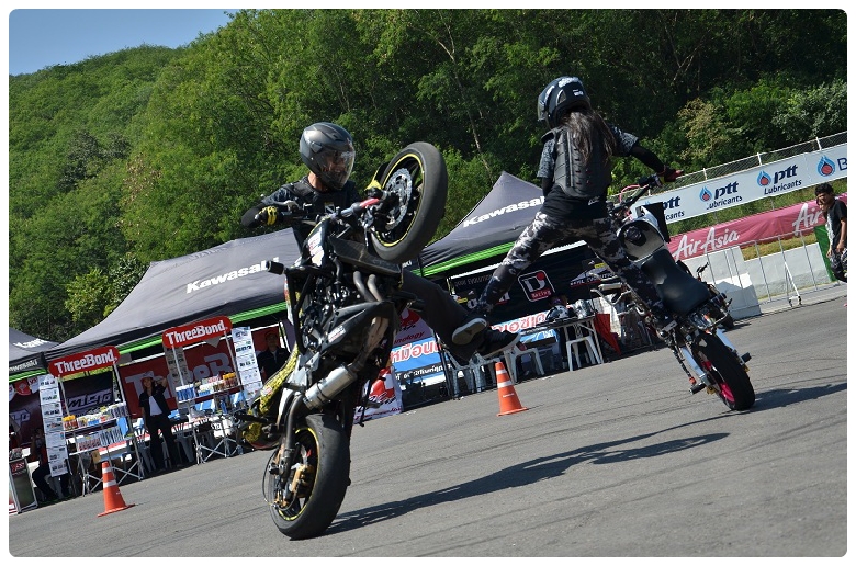 สนุกส่งท้ายปีกับการแข่งขัน Kawasaki MiniGP สนามสุดท้าย เพื่อคะแนนสะสมประจำปี เพื่อศักดิ์ศรีที่ไม่มีใครยอมใคร วันอาทิตย์ที่ 3 พฤศจิกายน 2556 วันที่จะกำหนดผู้ชนะและมีคะแนนสะสมสูงสุดประจำปีเป็นเดิมพัน ผู้ท้าชิงจากทั่วประเทศ ทีมแข่ง ,นักแข่ง ต่างมารวมตัวกันเพื่อวันนี้ ต่างก็งัดทุกกลเม็ด ทุกเทคนิค ทุกประสบการณ์ที่มี เพื่อชิงชัยกันในสนาม โดยรุ่นที่เปิดทำการแข่งขันนั้นมีเกือบครบทุกรุ่นของ Kawasaki กันเลยทีเดียว ไม่ว่าจะเป็น รุ่นKSR ,D-TrackerX ,D-Tracker125 ,D-Tracker150 ,Ninja250 ,Ninja650 ABS ,ER6-n ,Versys ,Z250 ,Z800 ,ZX10-R ยังมีรุ่น Zone สำหรับกลุ่ม KSR ที่แข่งกันเป็นทีมกับการออกสตาร์ทที่เป็นเอกลักษณ์ และรุ่น Lady สำหรับสุภาพสตรีที่ชื่นชอบการขับขี่แข่งขันโดยเฉพาะ เป็นอีกสีสรรของงานเลยทีเดียว บริเวณงานนั้นมีการออกร้านของผู้สนับสนุนใจดีมากมาย จำหน่ายสินค้าราคาพิเศษ จัดแสดงสินค้ารุ่นใหม่ๆ สำหรับผู้ที่สนใจเข้ามาร่วมชมงานนั้น สามารถลงทะเบียนรับคูปอง อาหารและเครื่องดื่มฟรี ระหว่างพักการแข่งขันยังมีการแสดง การขับขี่ผาดแผลงที่เรียกว่า Stunt Show สร้างความตื่นตาตื่นใจให้แก่ผู้ร่วมงานได้เป็นอย่างดี กิจกรรมดำเนินไปตามกำหนดการ จนถึงช่วงมอบรางวัลให้แก่ผู้ชนะการแข่งขันในรุ่นนั้นๆ ต้องขอขอบคุณ Kawasaki Motors Enterprise (Thailand) Co., Ltd. ที่ได้จัดกิจกรรมดีๆสนุกๆแบบนี้ให้แก่เพื่อนๆสมาชิก Kawasaki ได้เข้ามาร่วมสนุกกัน ขอขอบผู้สนับสนุนใจดีที่ให้การสนับสนุนกิจกรรมมาโดยตลอดครับ โซ่ DID ,โช้คอัพ YSS ,ผลิตภัณฑ์ BIKERS ,ท่อไอเสีย Devil Evolution ,ผลิตภัณฑ์ ThreeBond ,ยาง IRC และหวังเป็นอย่างยิ่งว่าจะได้รับการสนับสนุนตลอดไป คะแนนรวม KSR STOCK Kawasaki MiniGP 2013 ลำดับ ชื่อ - สกุล นักแข่ง คะแนนรวม 5 สนาม 1 วุฒินันท์ ธนลภัสปรีดา 49 2 โชติวรุต จุ้ยม่วงศรี 46 3 นววรรณ เสริฐกวี 40 4 ไชยอนันท์ วันทา 37 5 พิเชฐ กันตะ 30 5 วิษณุ เจ็กสุภาพ 30 KSR MODIFY ลำดับ ชื่อ - สกุล นักแข่ง คะแนนรวม 5 สนาม 1 ชำนาญ ศรีม่วง 87 2 ชุติไชย สุทธิเวช 85 3 รงรองนันท์ จรัสศิลปชีฟ 47 4 ภูบดินทร์ เหมืองสันเทียะ 43 5 ปรานต์ จิระนคร 32 KSR OPEN ลำดับ ชื่อ - สกุล นักแข่ง คะแนนรวม 5 สนาม 1 ยศธร สงคราม 55 2 ธีรพงษ์ สมคะเนย์ 54 3 ภูวดล มะแก้ว 45 4 ธีรธวัช คุณภู่ 37 5 อรรถพล เส็งเจริญ 35 |