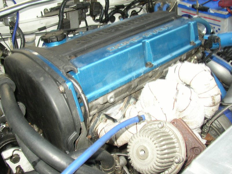 ในส่วนของเครื่องยนต์ได้ฝังรหัสร้อนแรง 4G63T ในแบบมีเทอร์โบที่ให้กำลังสูงสุด 280 แรงม้าที่ 6,500 รอบ/นาที พร้อมกับแรงบิดที่ 36.5 กก.-ม. ที่ 3,000 รอบ/นาที โดยปรับเทอร์โบเป็นของ HOLSET  กับโบออฟวาล์วและเวสเกตท์ของ HKS  ส่วนกรองอากาศของ HERRICANE แบบสเตนเลสพร้อมถังพักไอน้ำมัน ติดเรกกูเลเตอร์ของ SARD และขยายท่อไอเสียแบบสเตนเลส คู่ผ้าพันท่อไอเสีย นอกจากนี้ยังแต่งฝาน้ำมันเครื่องและฝาหม้อน้ำของ RALLI  ART