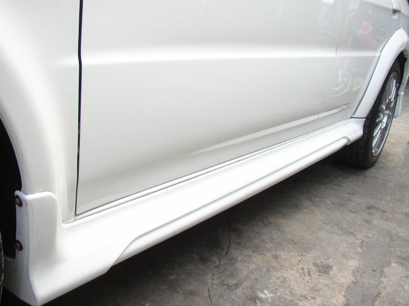 ส่วนกระจกรอบคันได้เปลี่ยนเป็นสีเขียวเช่นเดียวกับกระจกส่องข้าง เลยมาที่หลังคาเอาของ EVOVIแบบมีซันรูฟมาสวมแทน ถัดลงมาที่สเกิร์ตข้างเป็นทรงขอบสันกลมมนไปถึงโป่งล้อหลังที่อาศัยแปะยึดเข้าไปแทน และรับกับกันชนหลังทรงอวบใหญ่ โดยระหว่างกันชนกับชายล่างยังได้ออกแบบให้เป็นช่องแนวนอนแบ่งเป็นสี่ช่อง แถมชายล่างยังเล่นเป็นเส้นขอบไล่เป็นแนวยาวไปเกือบถึงปลายข้างกันชน นอกจากนี้ชายล่างยังได้เว้าเป็นที่โผล่ของหม้อพักใบปลายขนาดใหญ่