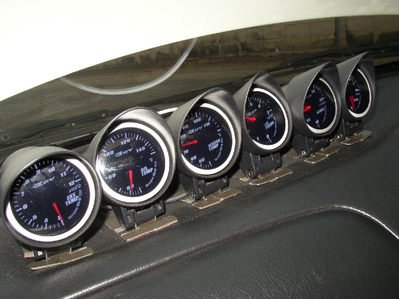 สำหรับเกจวัดต่างๆ เป็นของ RAV แบบหน้ามืดมีแก๊ปติดมาให้ด้วย โดยมีส่วนเกจวัด EXT TEMP. เกจวัด OLI TEMP. เกจวัด WATER TEMP. เกจวัด OLI PRESS เกจ์วัด BOOST และเกจวัด RPM และที่คอพวงมาลัยได้ติดตั้งตัวปรับบูสต์ไฟฟ้าของ GREDDY รุ่น PROFEC-B SPEC II ซึ่งมีรูปทรงกะทัดรัดขนาดพอเหมาะกว่ารุ่นก่อน พร้อมติดคู่กับเทอร์โบไทเมอร์ของ GREDDY เช่นกัน